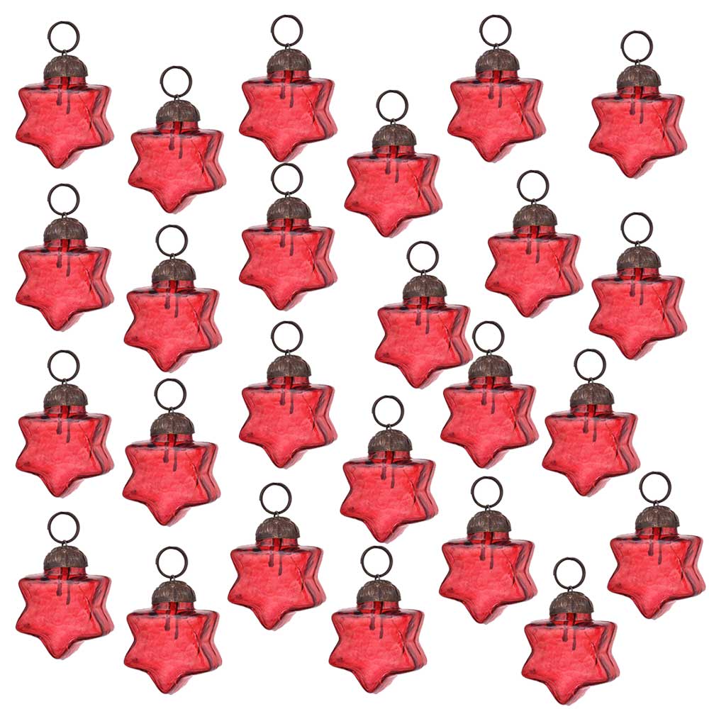 Red Star Combo Glass Tiny Christmas Hanging Set of 25