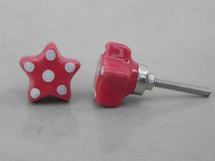 Red Star White Polka Ceramic Wardrobe Knob