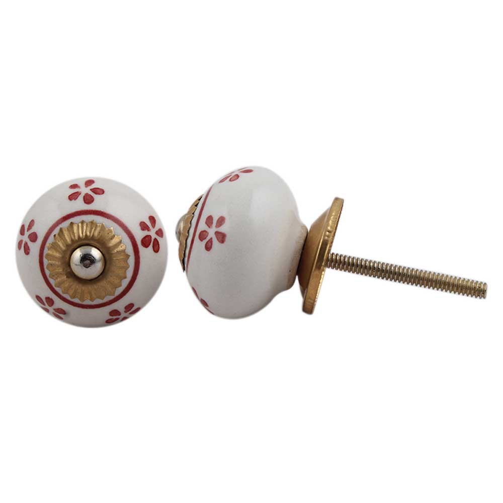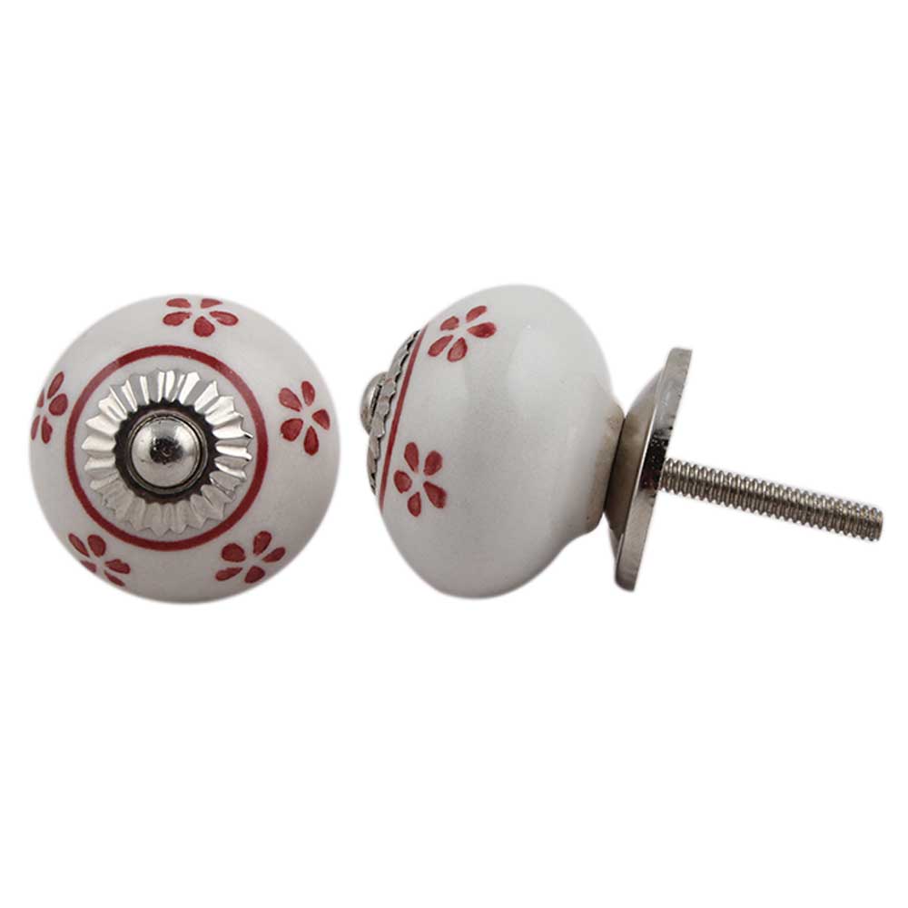 Red Tiny Floral Ceramic Knob