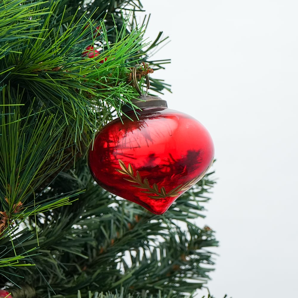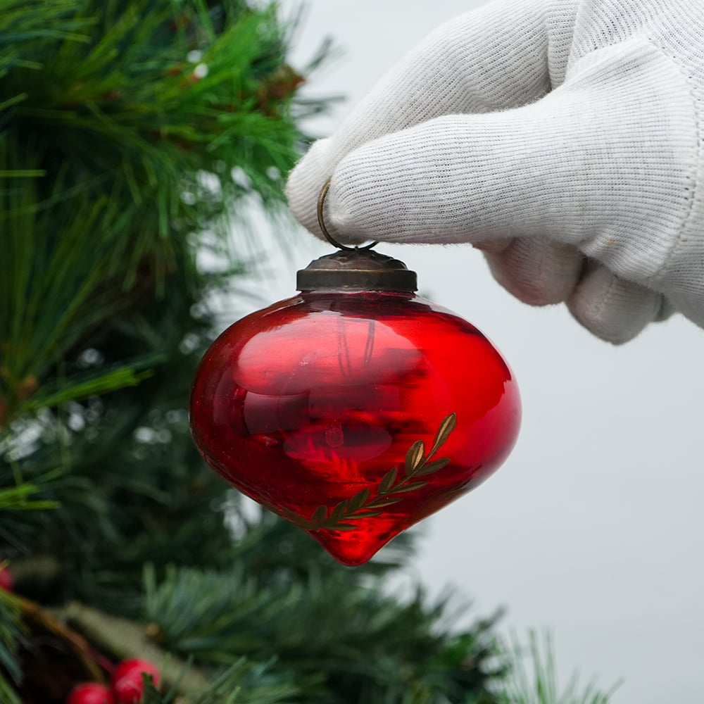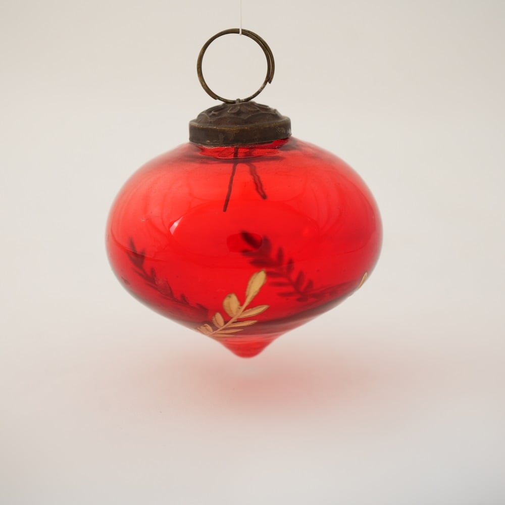 Red Vintage Turnip Shaped Leaf Cut Glass Christmas Ornament