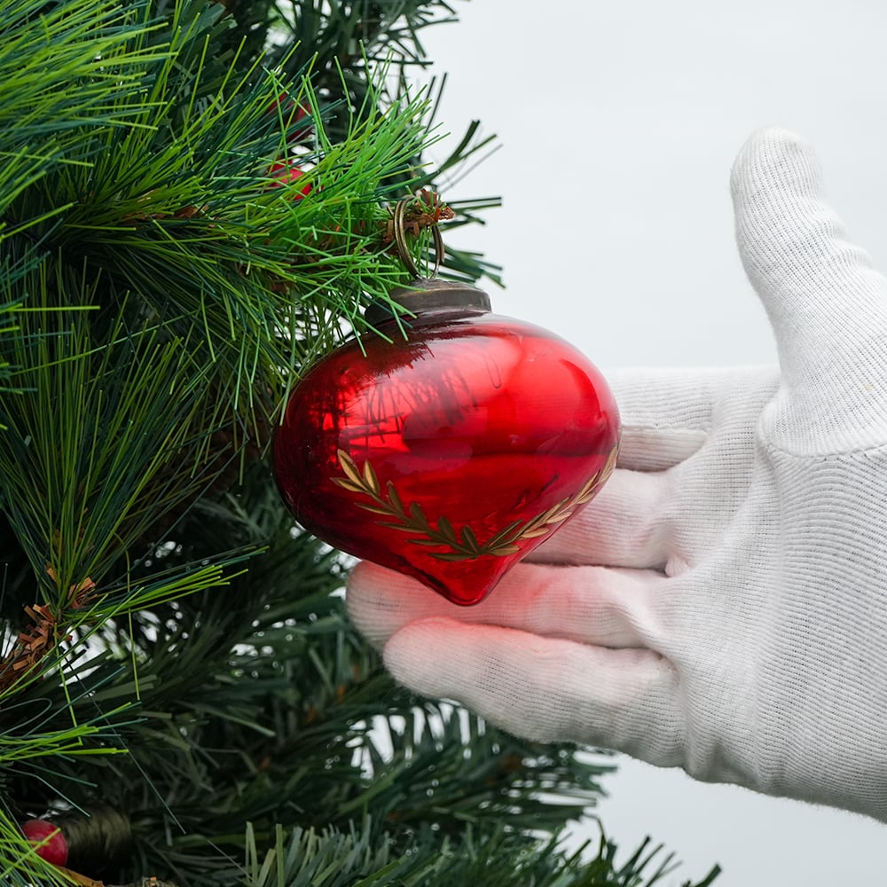 • Red Vintage Turnip Shaped Leaf Cut Glass Christmas Ornament