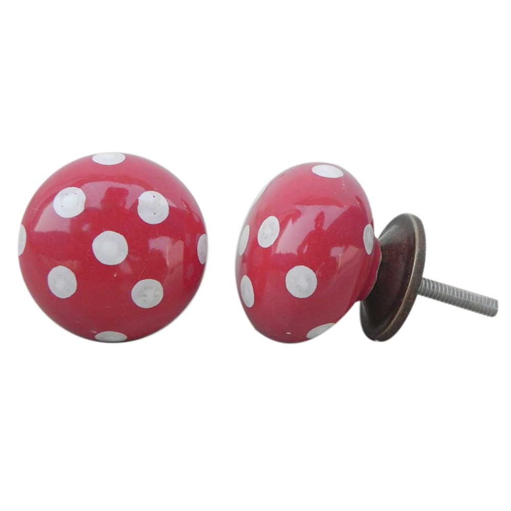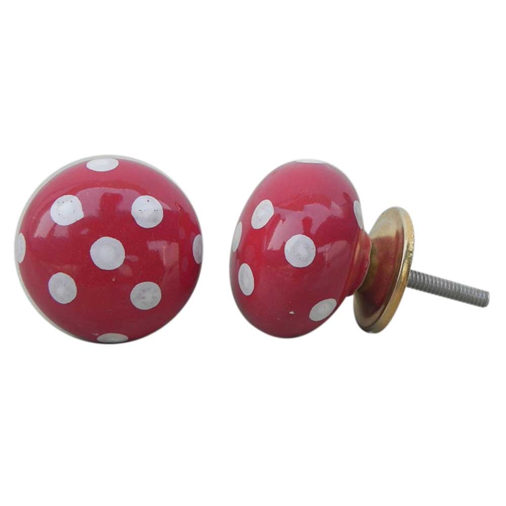 Red White Polka Ceramic Wardrobe Knob