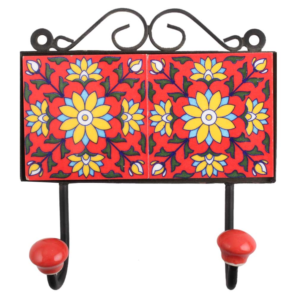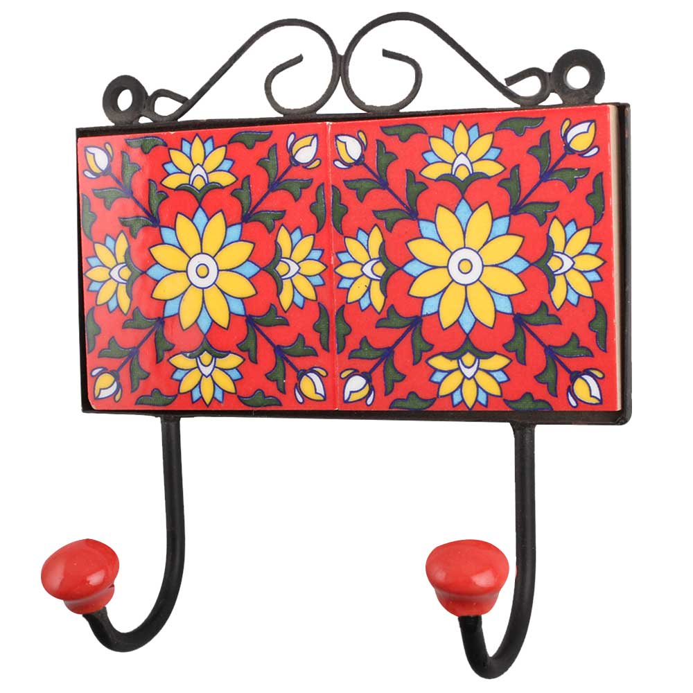 Red Yellow Floral Tiles Hook
