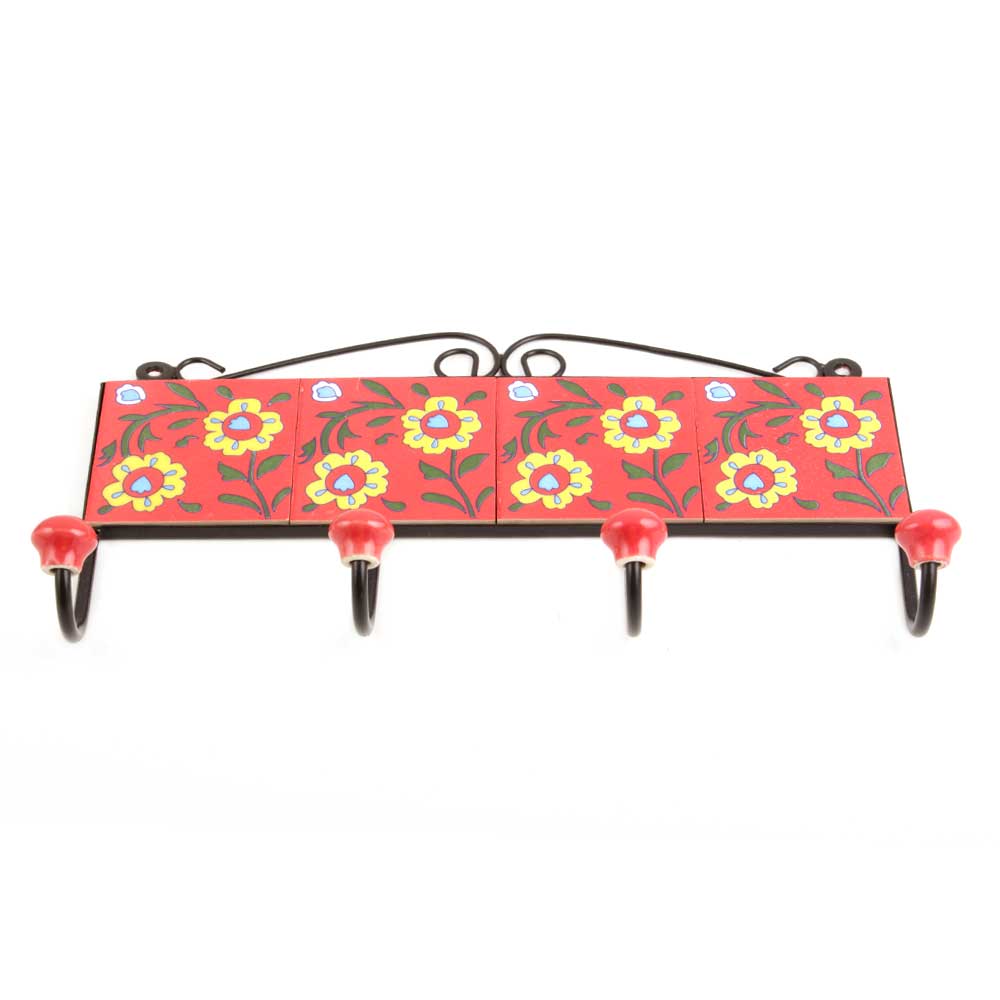 Red Yellow Sunflower Tiles Hooks .When put on wall or cabinet it is an art in itself. The metal part of this hook is black powder coated.