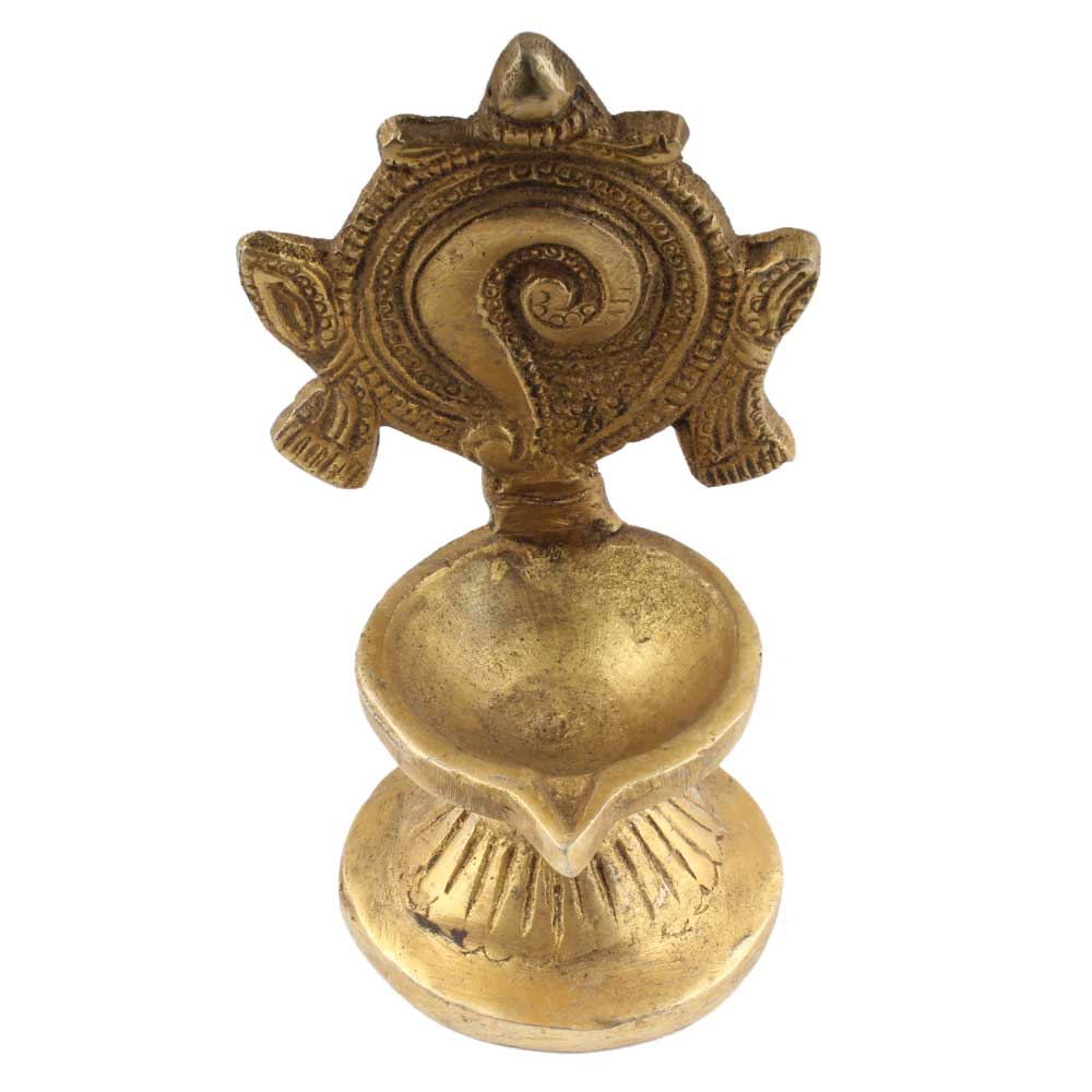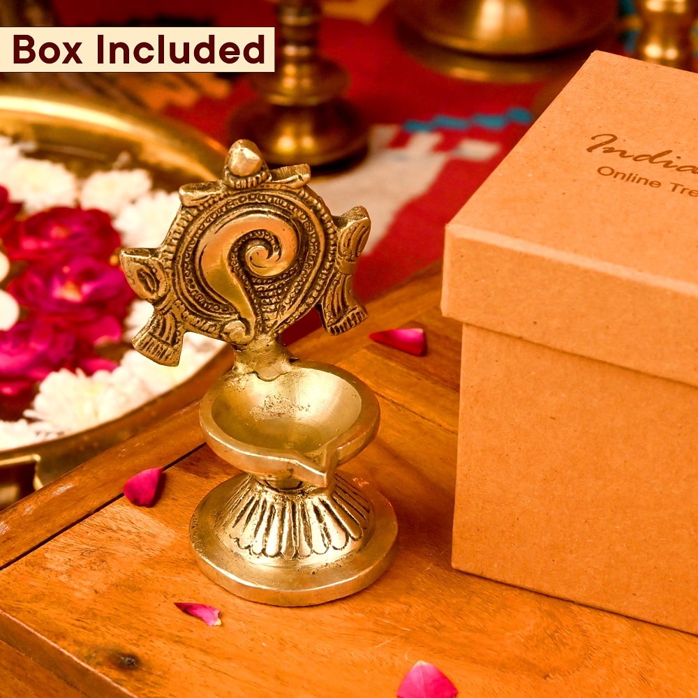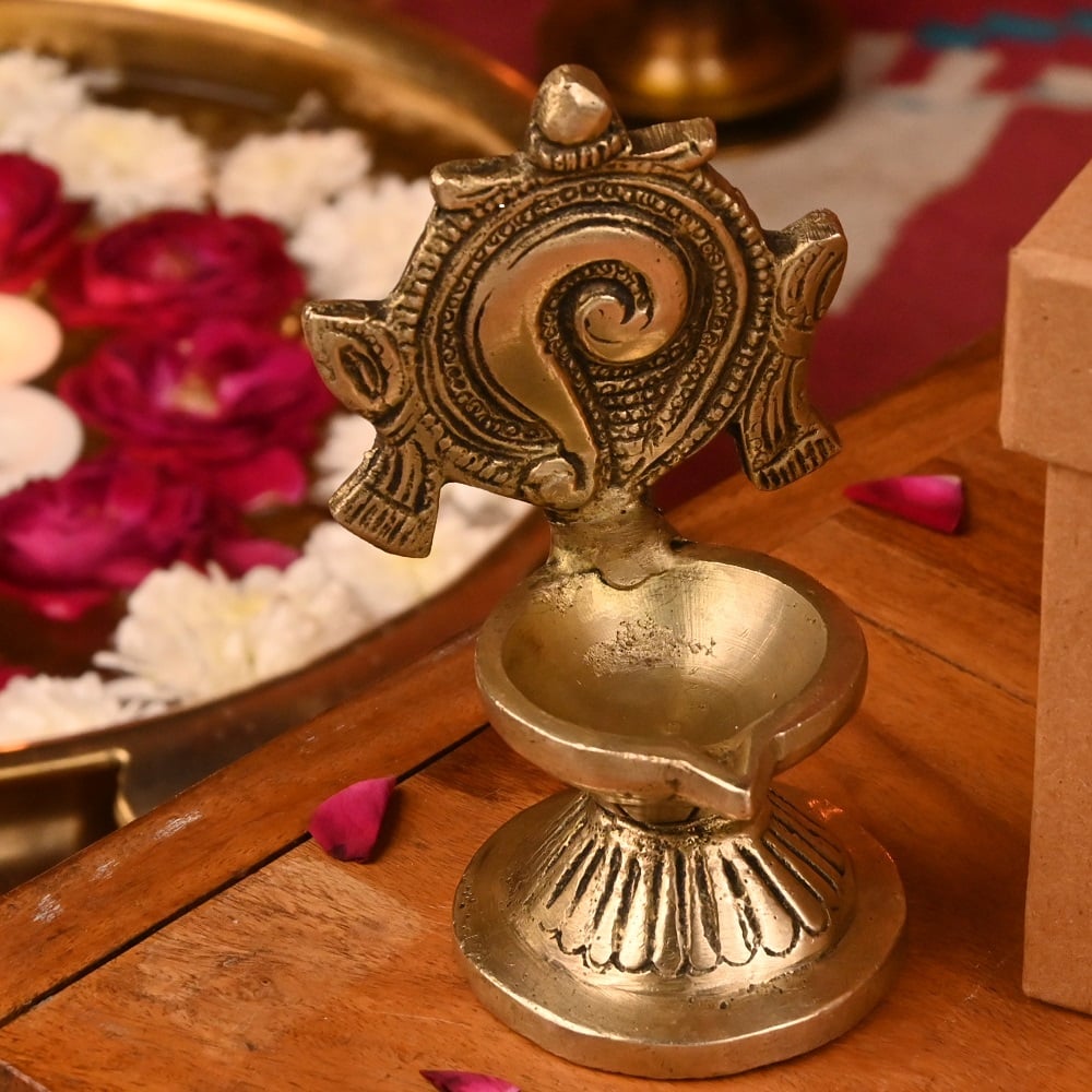 Celebrate festivals with the divine radiance of the Shankha Chakra Brass Oil Lamp Diya, a symbol of purity, power, and protection. Handcrafted from solid brass and polished in a rich golden hue, this diya beautifully blends the sacred conch and chakra motifs, making it a powerful addition to any mandir or puja setting. Its tall, elegant design makes it both a functional oil lamp and a statement of spiritual artistry