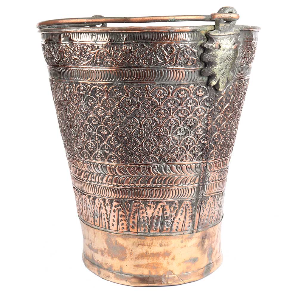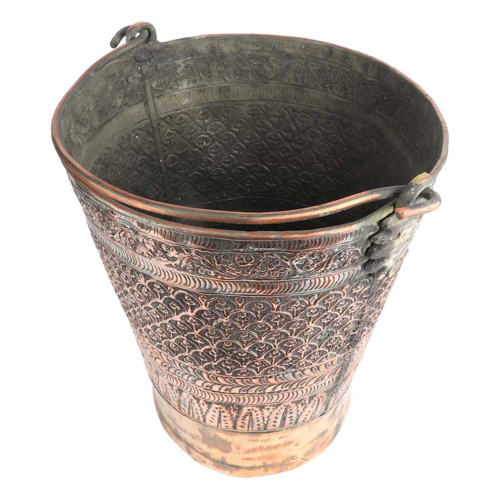 Repousse Work Copper Bucket With Handles made by master craftsmen using traditional methods and equipments. Diwali gift, Wedding gift, anniversary gift, house warming gift, garden and stage decoration Gift for near and dear ones.