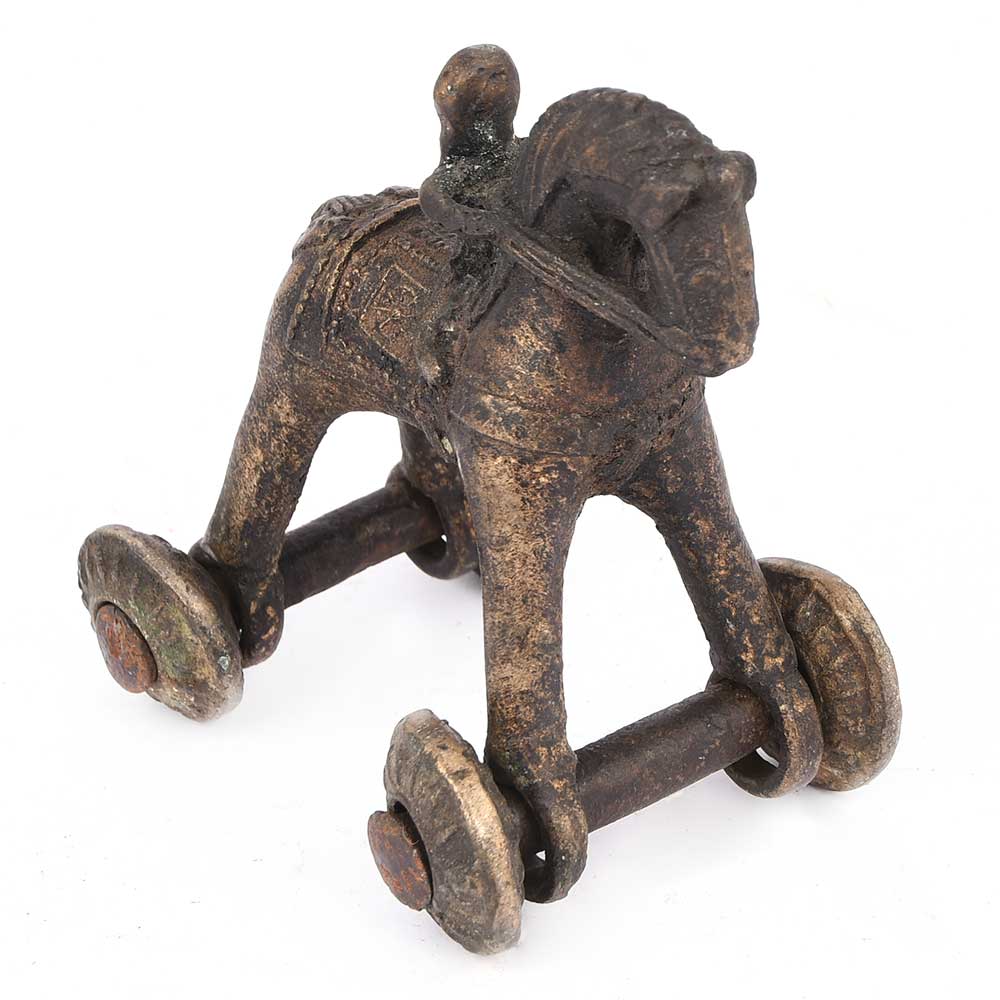 This Piece Depicts a Rider on An Ornately Dressed Horse That is Attached to Decorated Wheels to Make It Roll Made in the Finest Quality Brass.