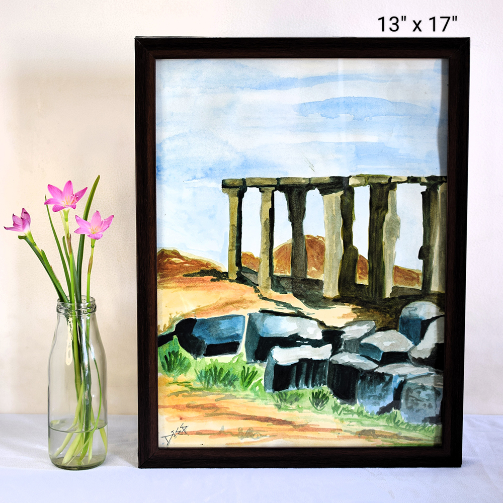 Rock Formation Watercolor Painting of Hampi Art on Paper by Artist Dimpana | 13 x 17 Inches