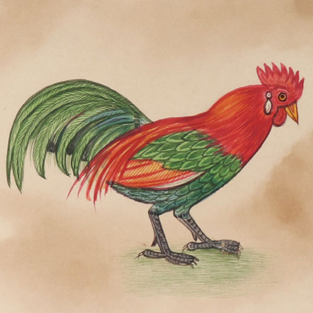 • Rooster Watercolor Miniature Painting