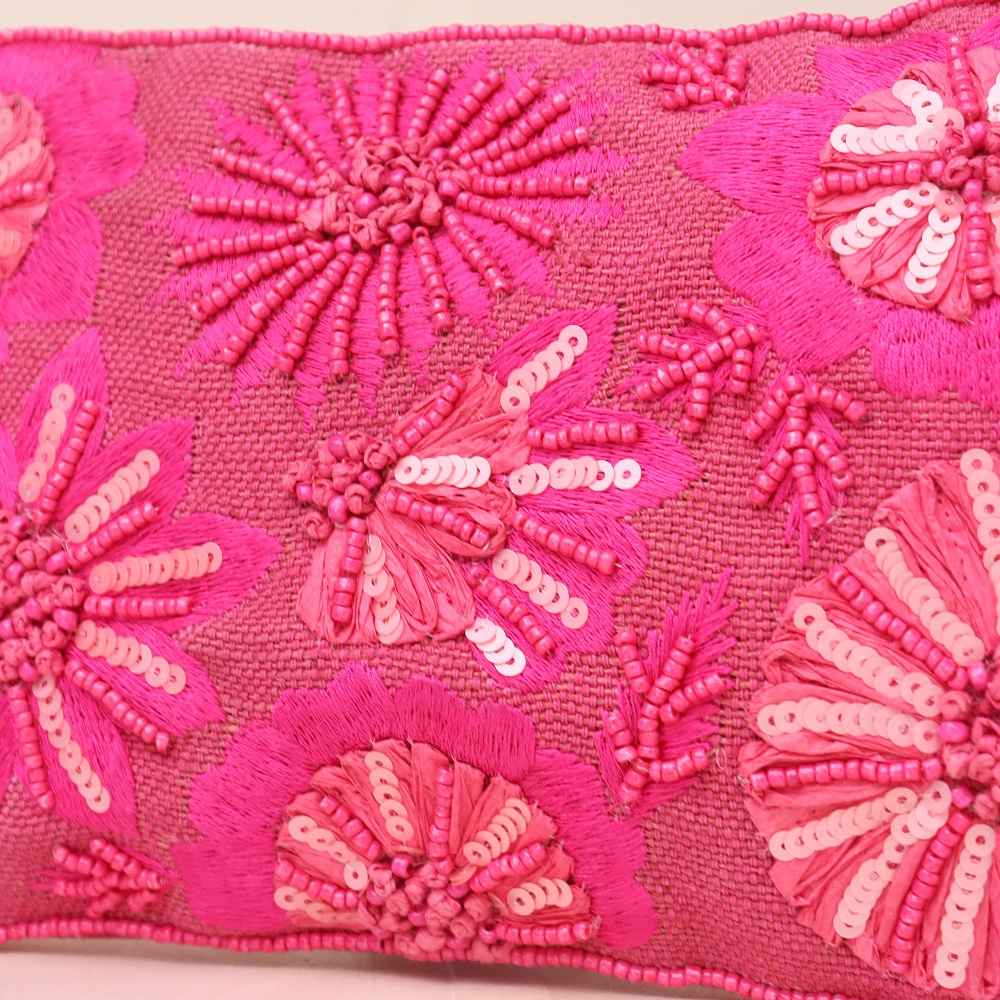 Celebrate bold femininity with this handcrafted pouch embellished in shimmering sequins and intricate threadwork. Featuring radiant floral patterns across its canvas, this pouch is a stunning blend of artistry and utility. A stylish choice for carrying essentials, it adds a vibrant statement to both traditional and modern ensembles.