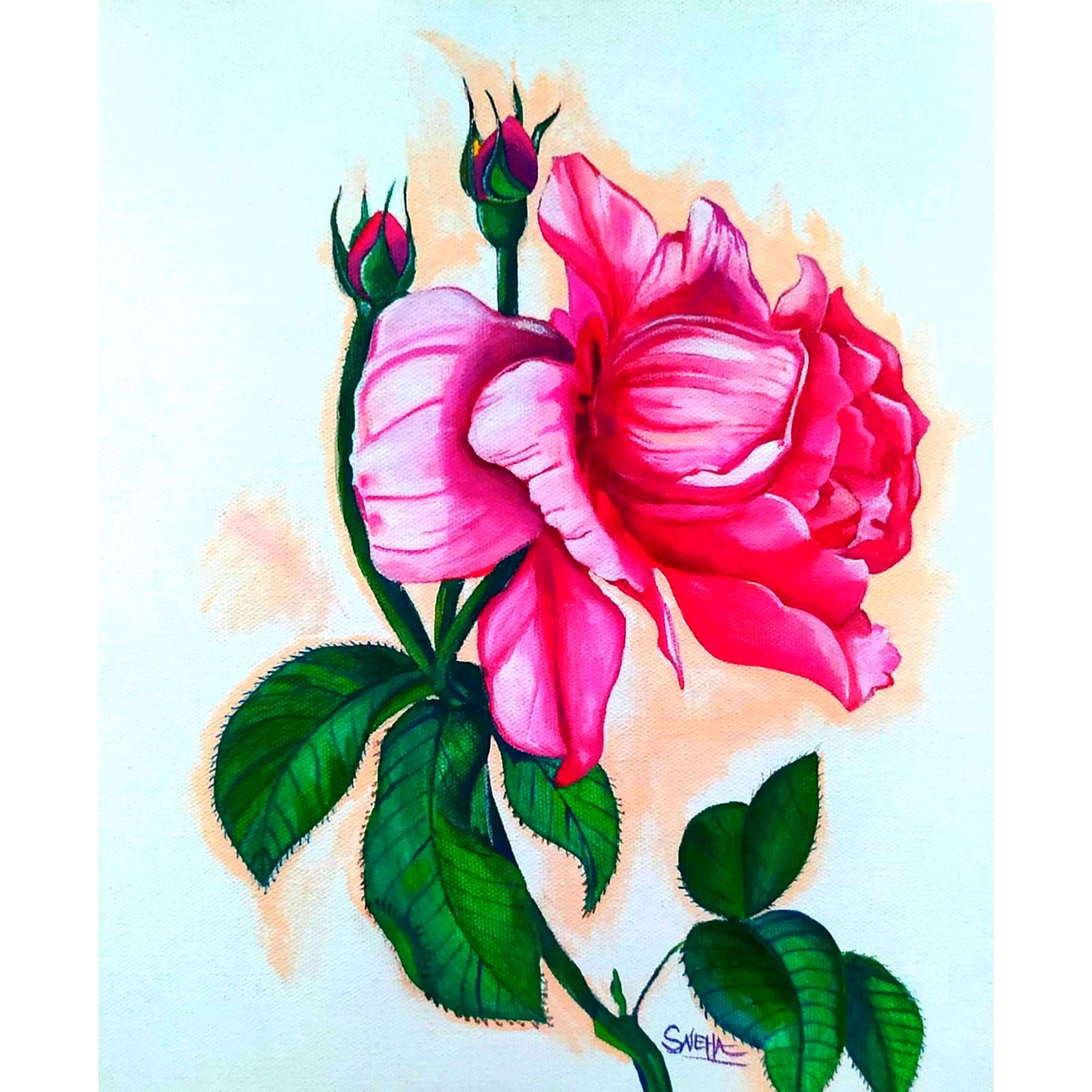 • Rose Flower Canvas Painting by Artist Snehaprava Maharana