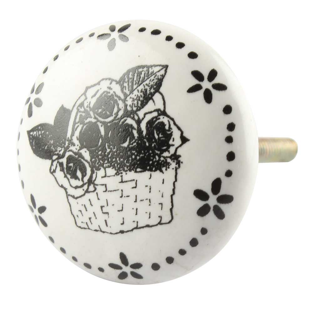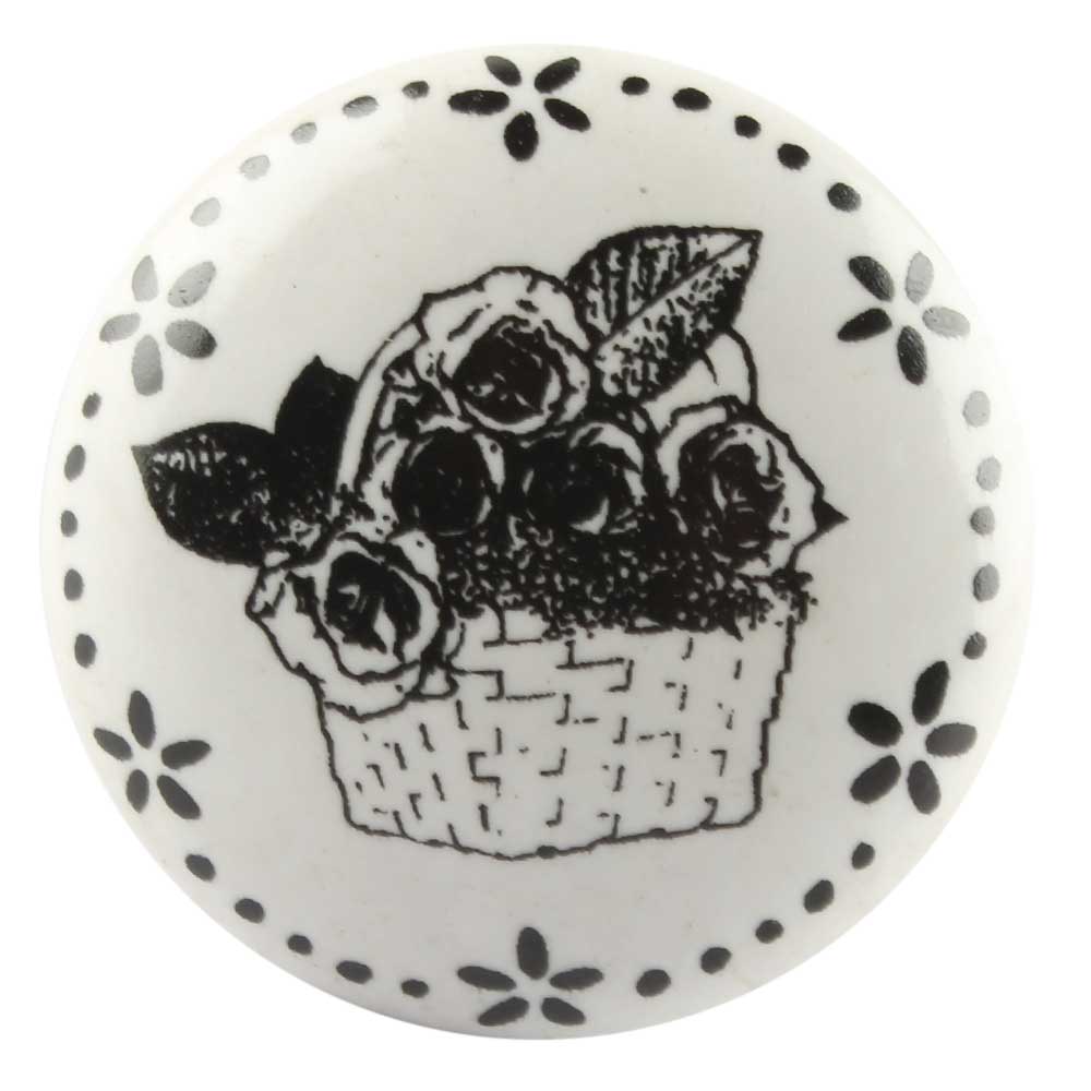 Rose In Bucket Ceramic Flat Knobs .Handmade Ceramic Furniture Knobs. Ideal for Drawer, Dresser, Cabinet, Wardrobe, Cupboard and almirah