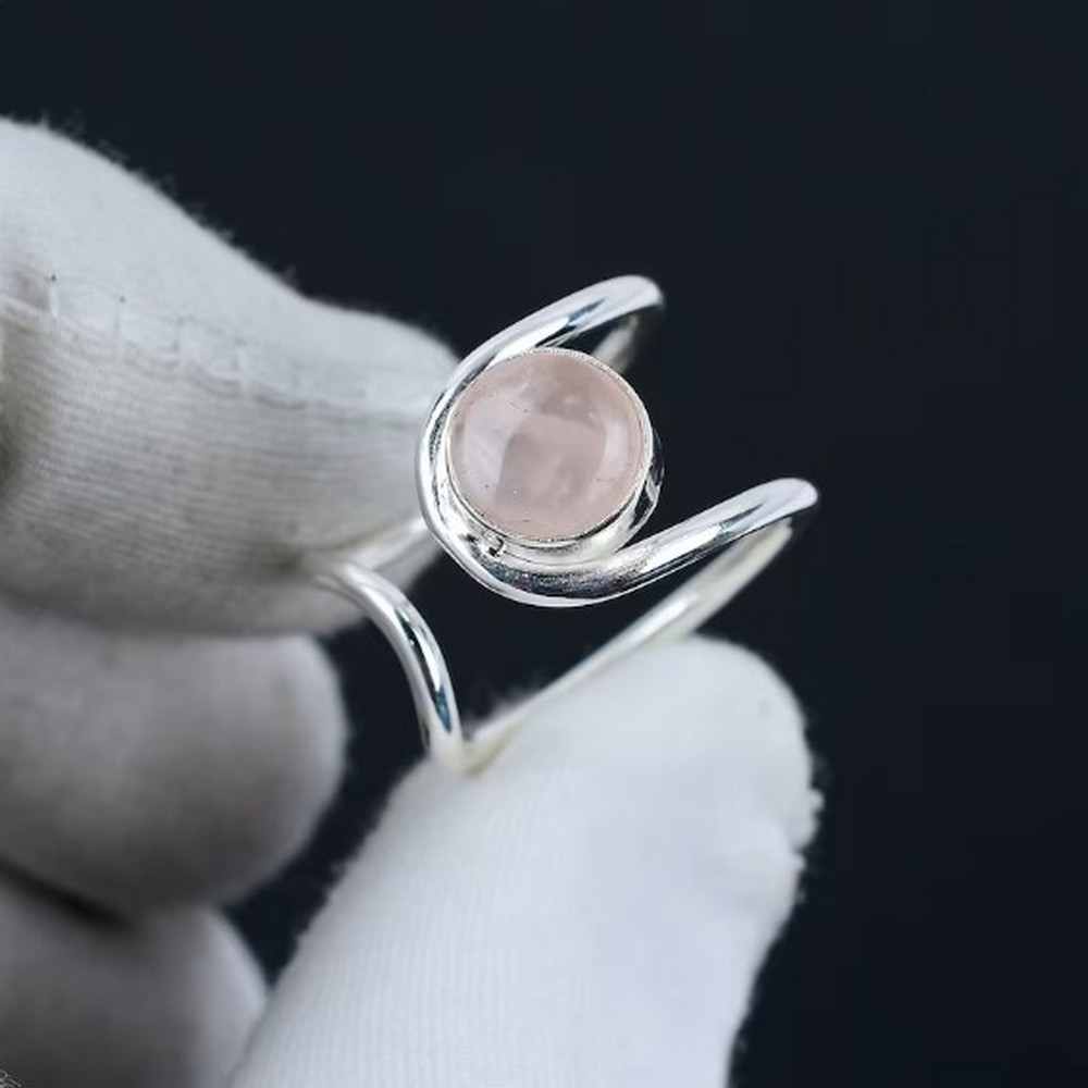 Rose Quartz 925 Sterling Silver Ring Handmade Healing Gemstone