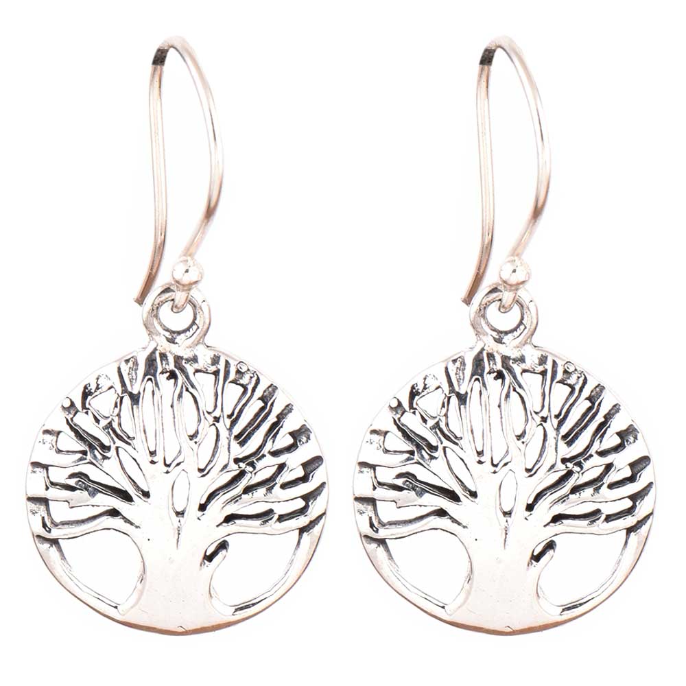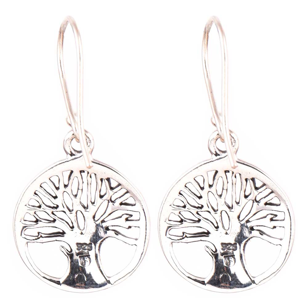• Round 92.5 Sterling Silver Earrings Tree of Life Broad Trunk Drop Earrings