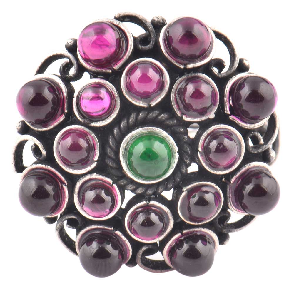 Round Amethysts Studded 92.5 Sterling Silver Ring Adjustable Oxidized Ring For Women (Free Size)