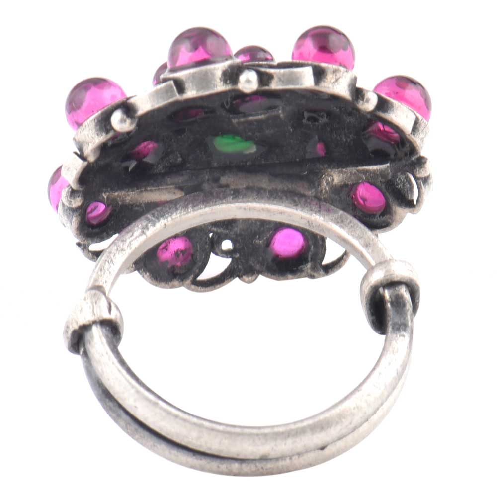 • Round Amethysts Studded 92.5 Sterling Silver Ring Adjustable Oxidized Ring For Women (Free Size)