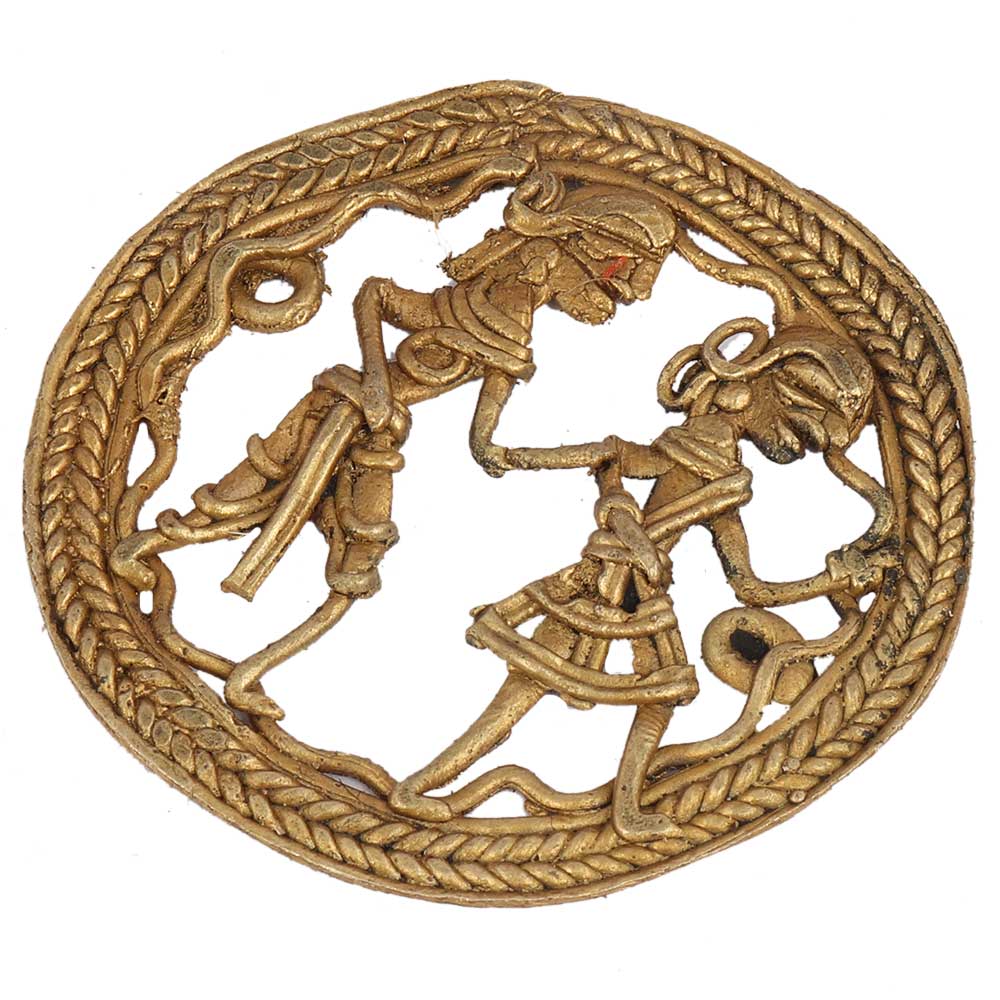 Round Border Brass Wall Art Of Village Couple Daily Activity