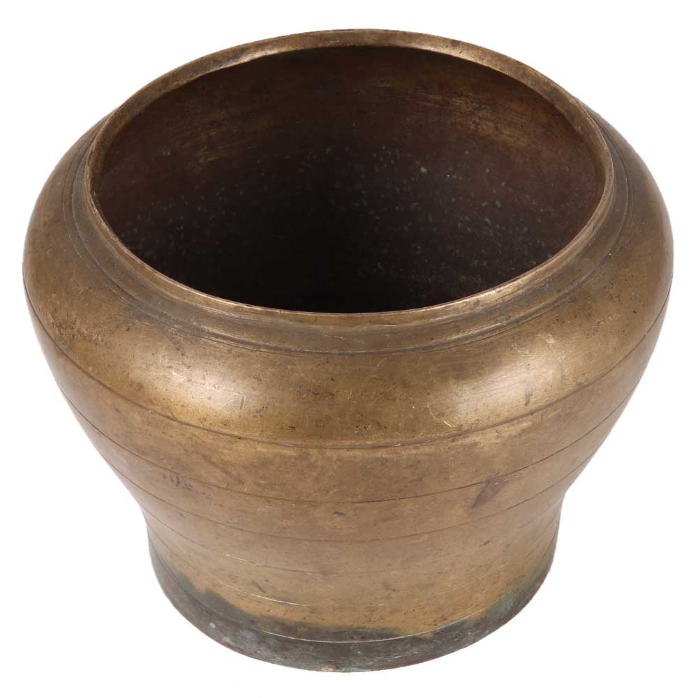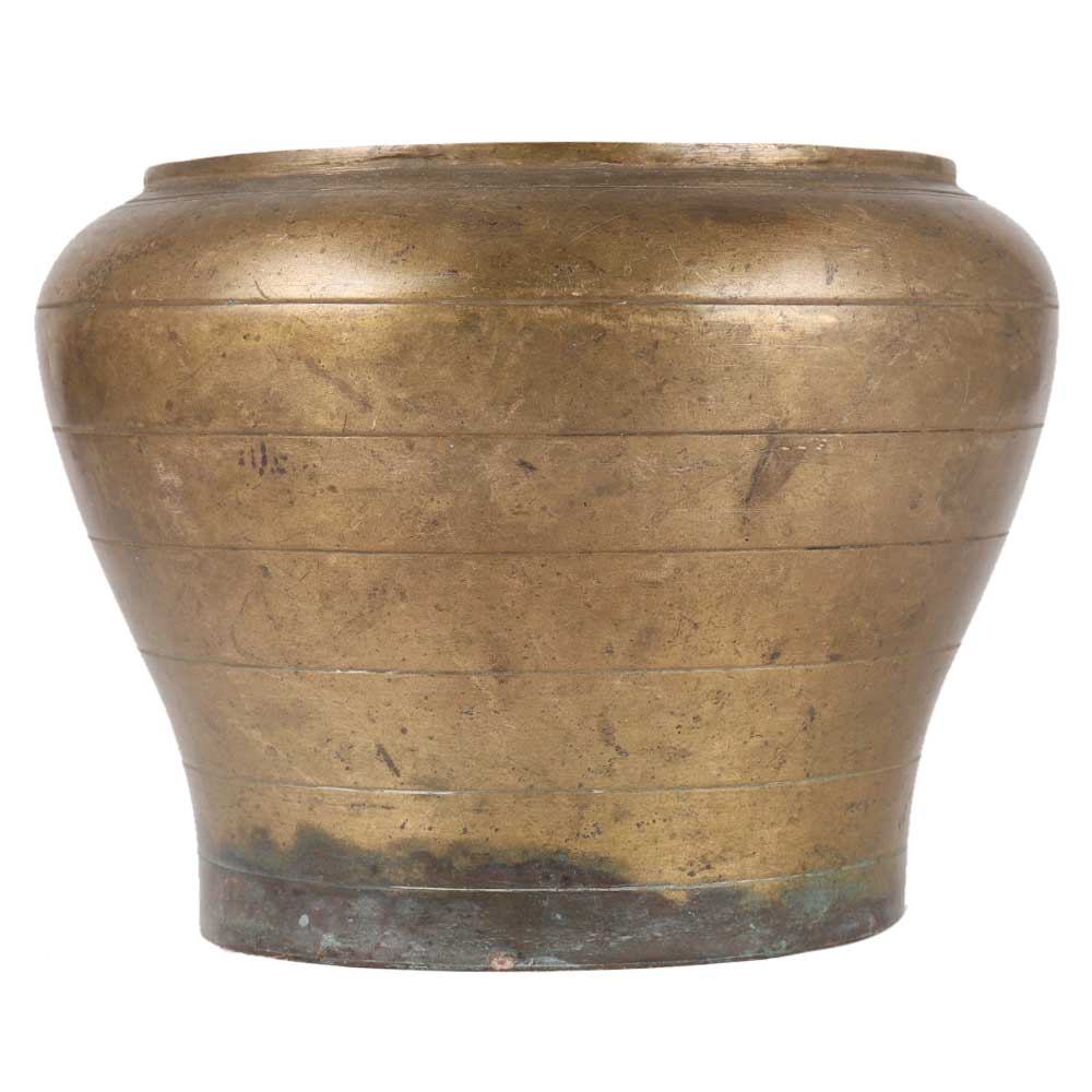 Round Brass Flower Pot In Dark Finish