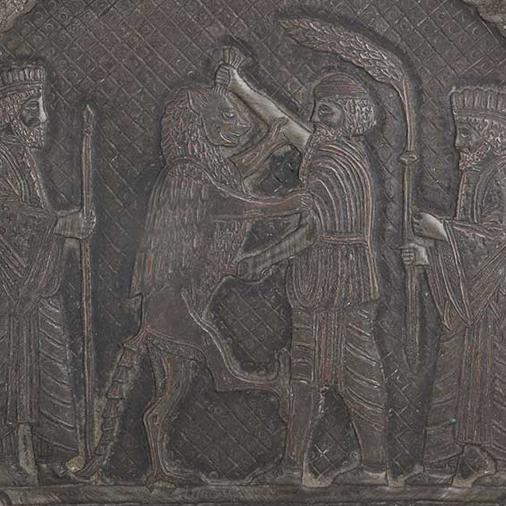 Round Brass Iranian Mythological Engraved Plate Wall Hanging
