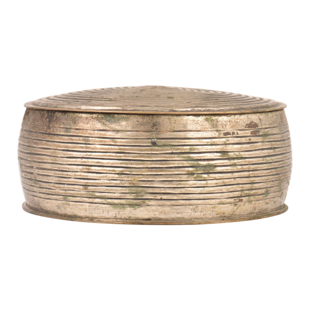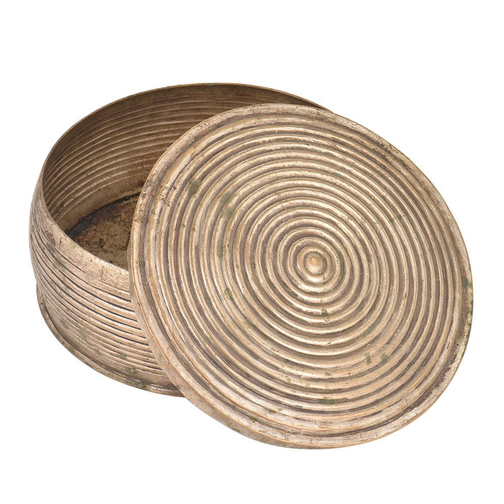 Round Brass Tiffin Box Spiral Design Engraved Box