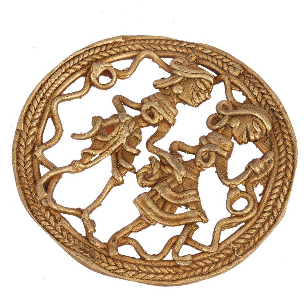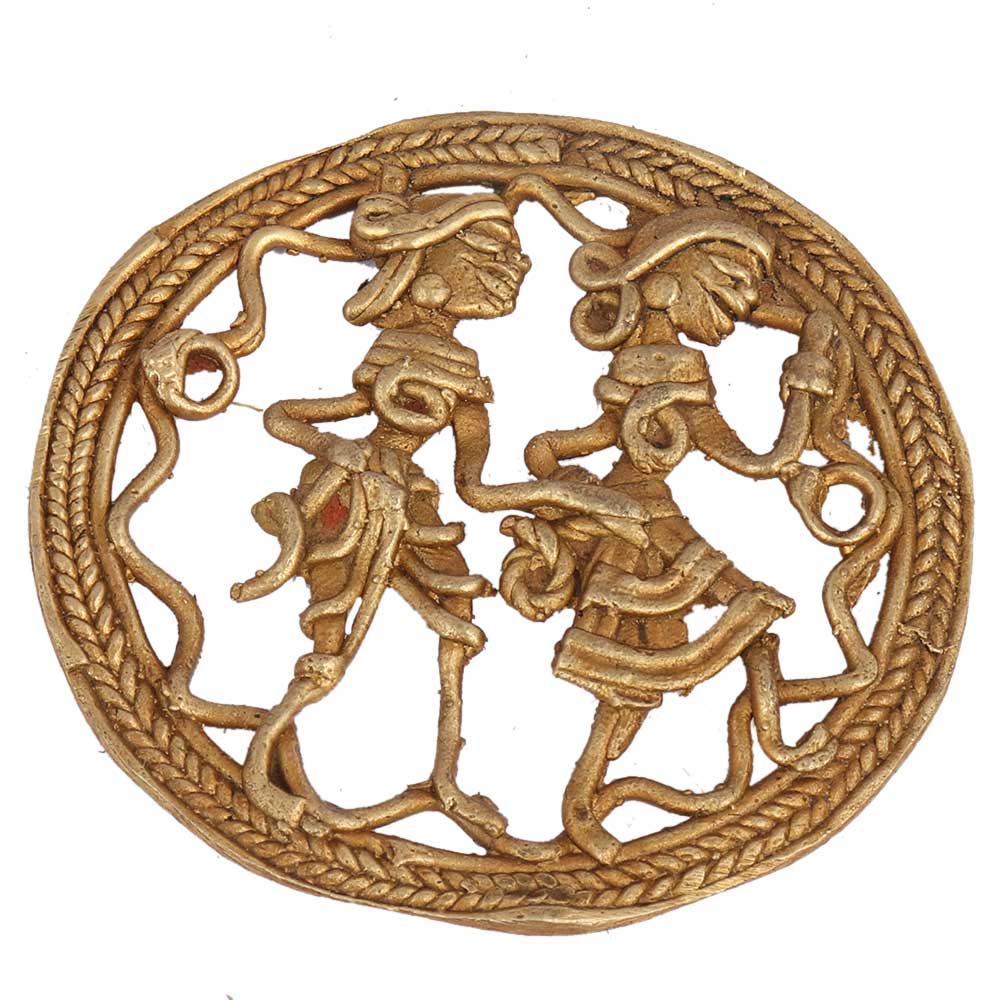Round Brass Wall Art Tribal Couple In Traditional Outfit