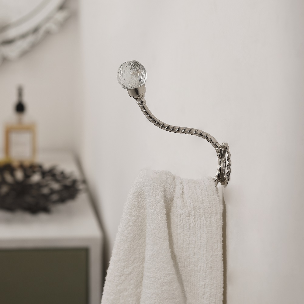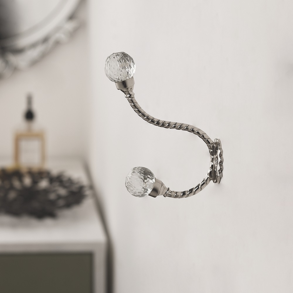 Q: Does the glass sparkle like crystal? Q: Is the hook strong enough for heavy coats or bags? Q: Can it be used in bathrooms or kitchens? Q: Is the glass durable or fragile? Q: Are the mounting parts included?