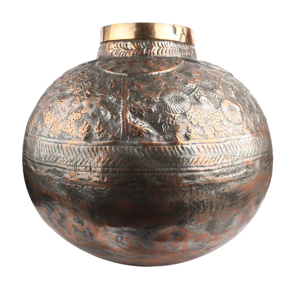 Round Copper Traditional Water Pot Embossed Design