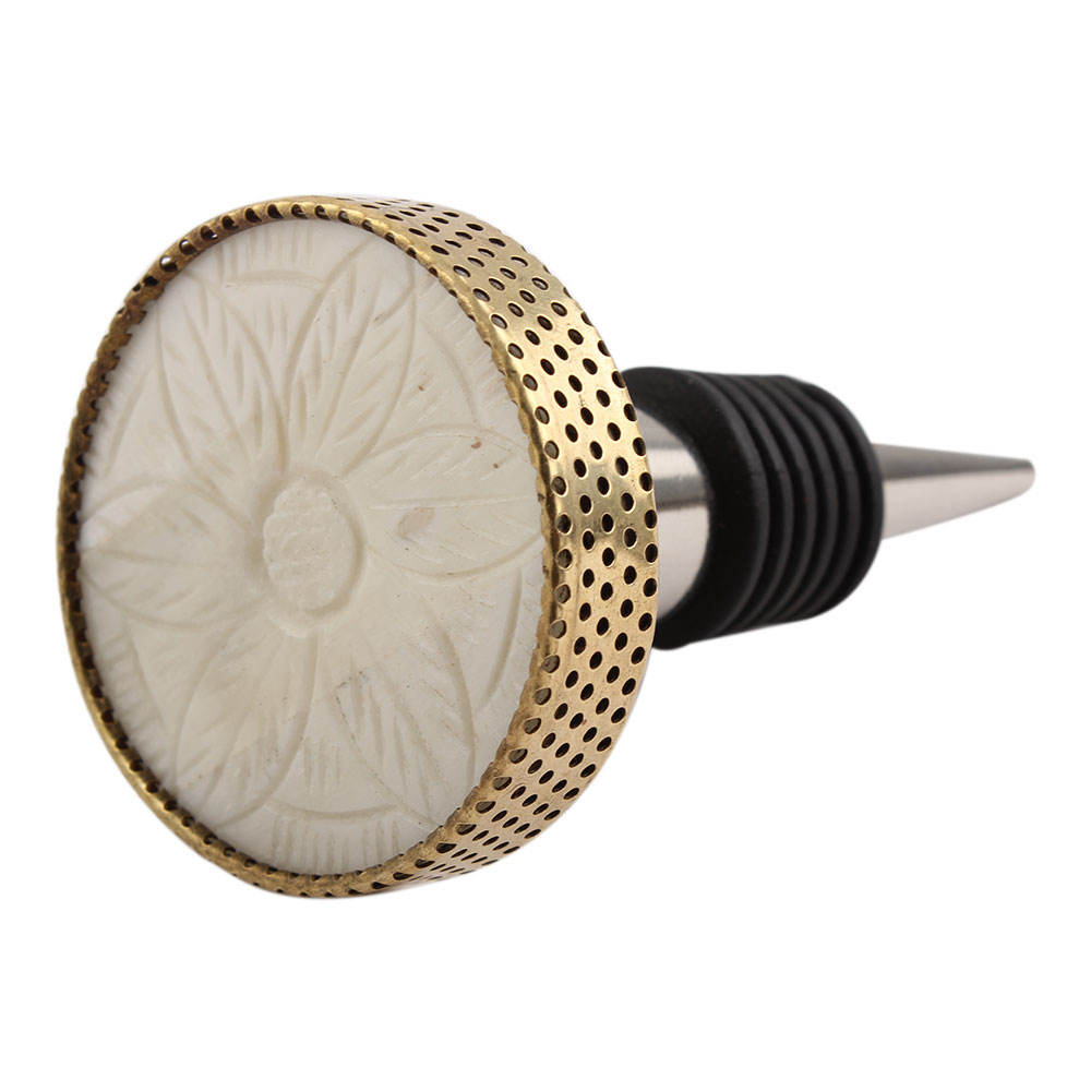 Round Cream Flower Metal And Bone Wine Stopper