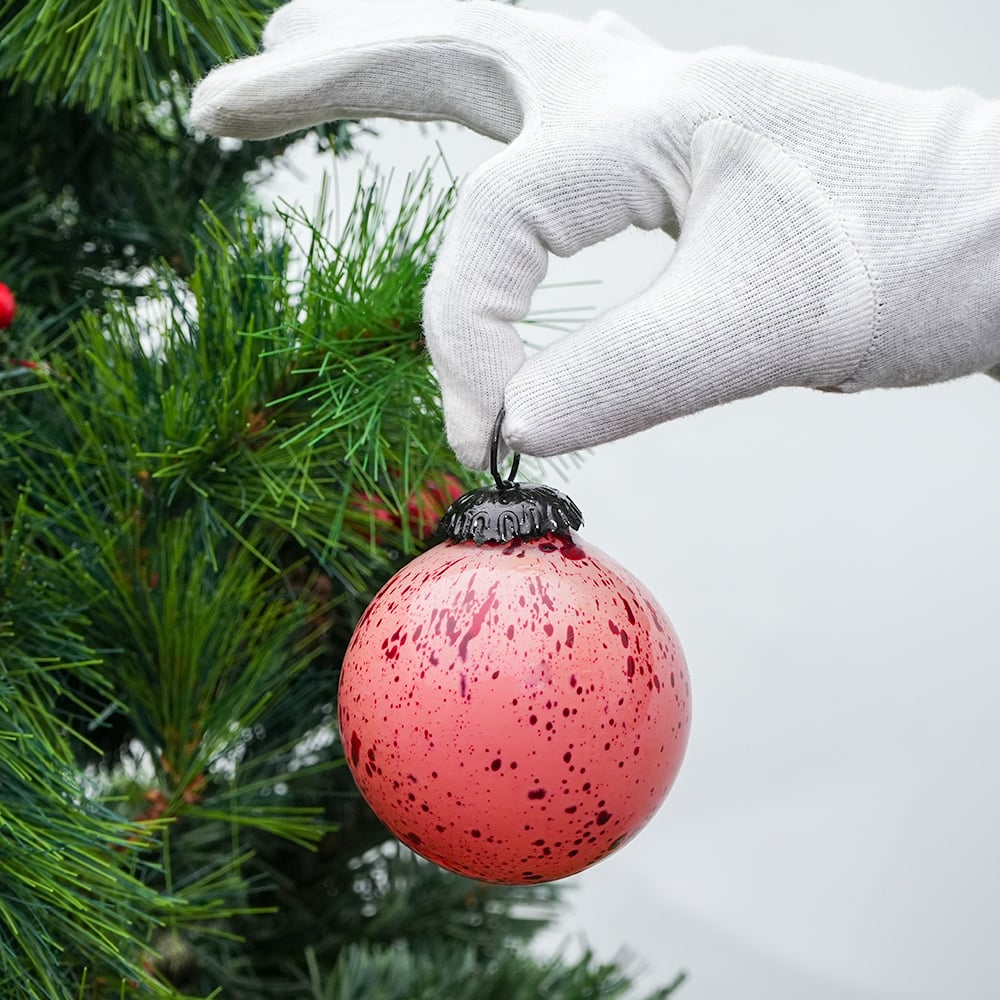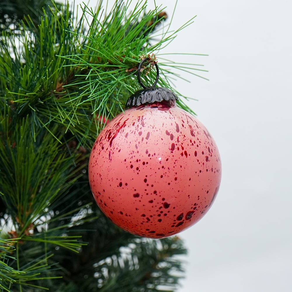Round Decorative Rose Gold Ava Mercury Hanging Ornament. Crafted from high-quality glass with a smooth glossy finish, this decorative bauble adds a classic and festive touch to Christmas trees, wreaths, and holiday displays.