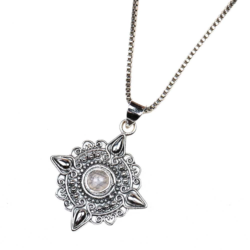 • Round Engraved Grey Stone 92.5 Sterling Silver Pendant