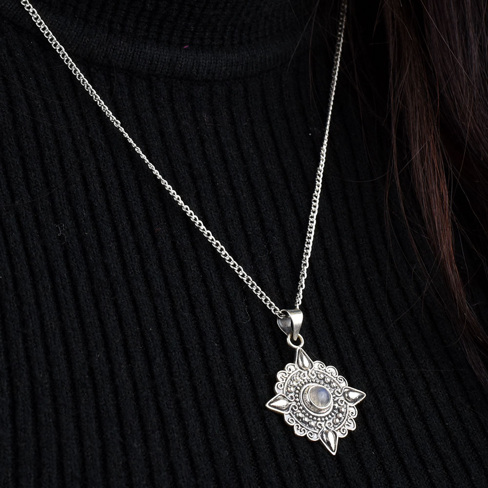 Round Engraved Grey Stone 92.5 Sterling Silver Pendant can be paired with casual, formal or office wear. It can be gifted to friend and relatives on anniversaries, weddings, engagements, birthdays, Formal functions or those special evening where less is more.