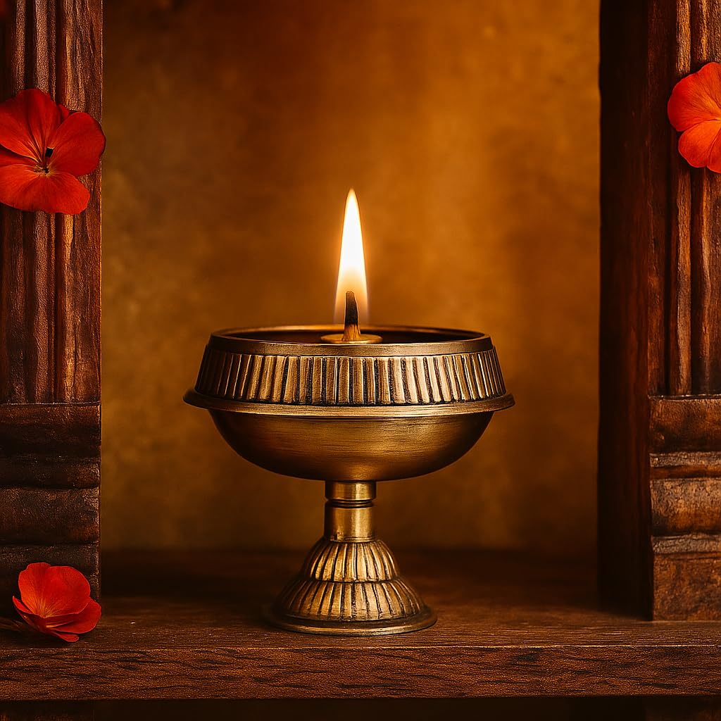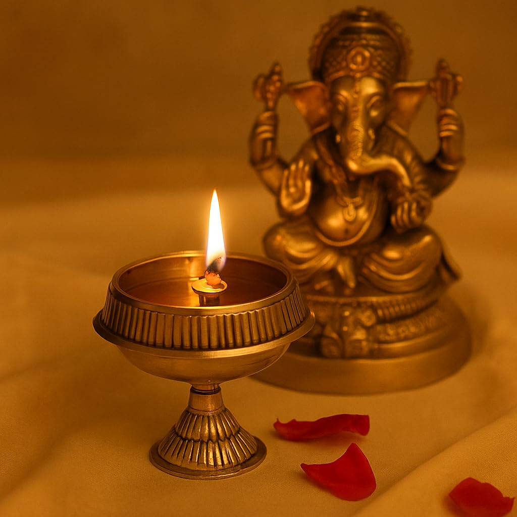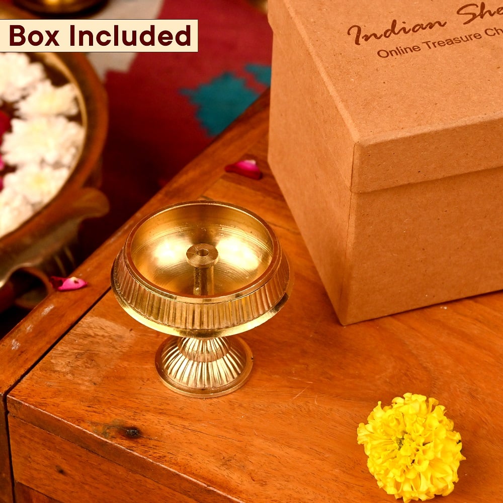 Add a timeless touch to your celebrations with the Round Golden Vintage Brass Oil Lamp, a diya that embodies heritage and elegance. With its smooth round shape and radiant golden finish, it symbolizes light, devotion, and prosperity. Perfect for both daily puja rituals and festive decorations, this diya offers a graceful balance of simplicity and charm.