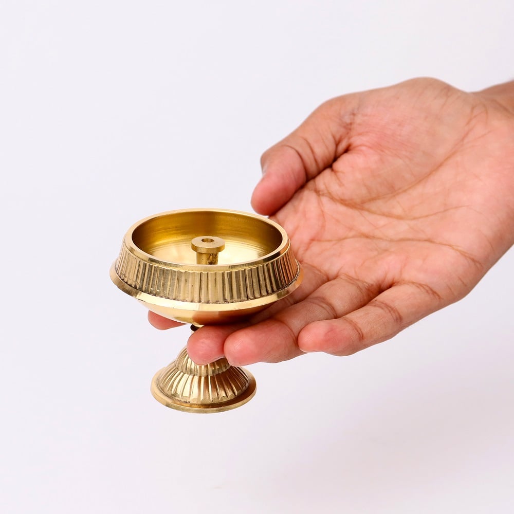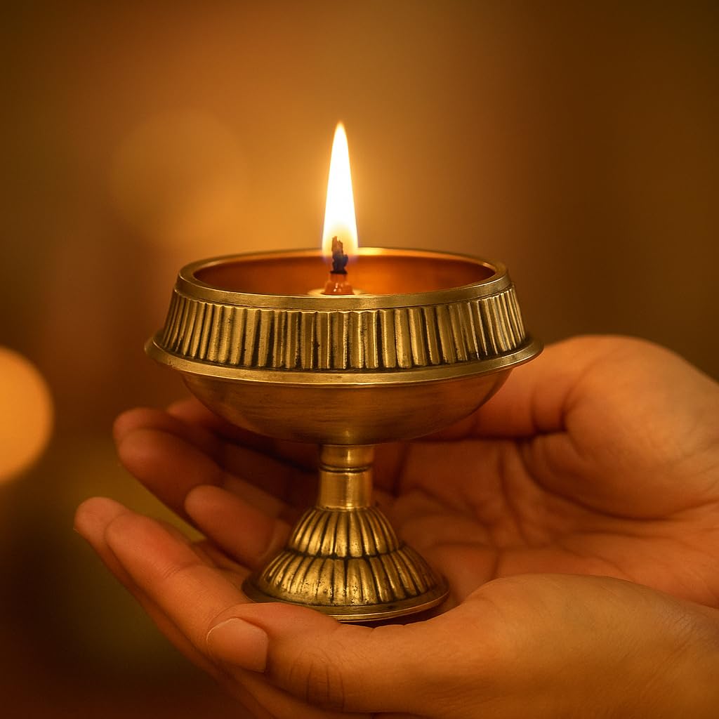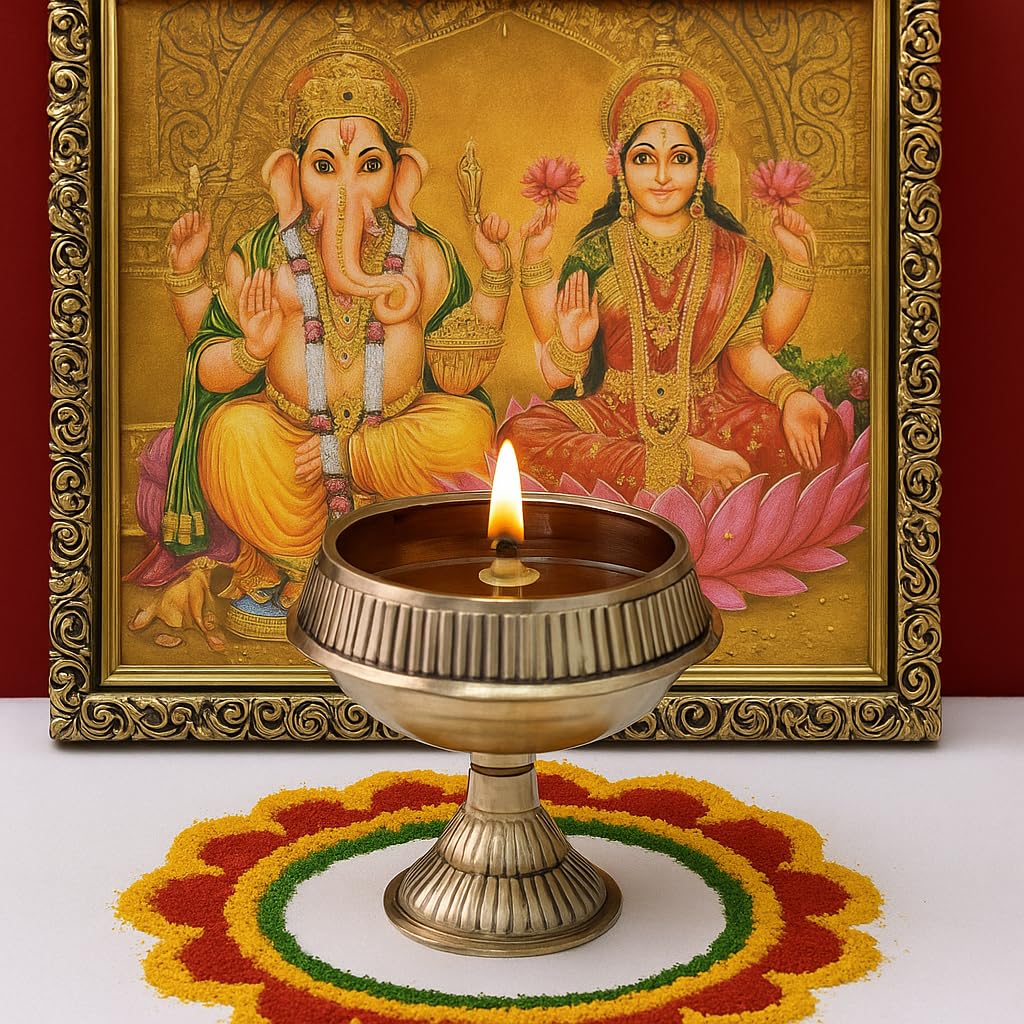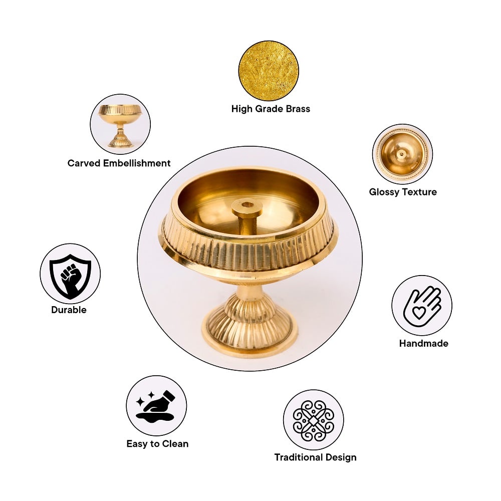 Add a timeless touch to your celebrations with the Round Golden Vintage Brass Oil Lamp, a diya that embodies heritage and elegance. With its smooth round shape and radiant golden finish, it symbolizes light, devotion, and prosperity. Perfect for both daily puja rituals and festive decorations, this diya offers a graceful balance of simplicity and charm.