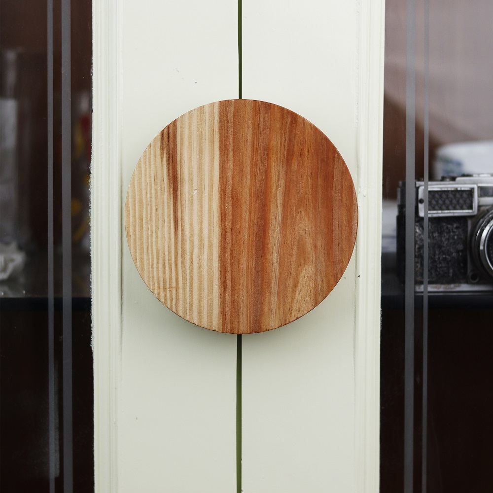 The natural wood finish brings a bit of the outdoors inside, creating a serene and organic atmosphere. Whether in a bedroom, living room, or kitchen, the Round Natural Wooden Dresser Handle introduces a calming, earthy element to your space.