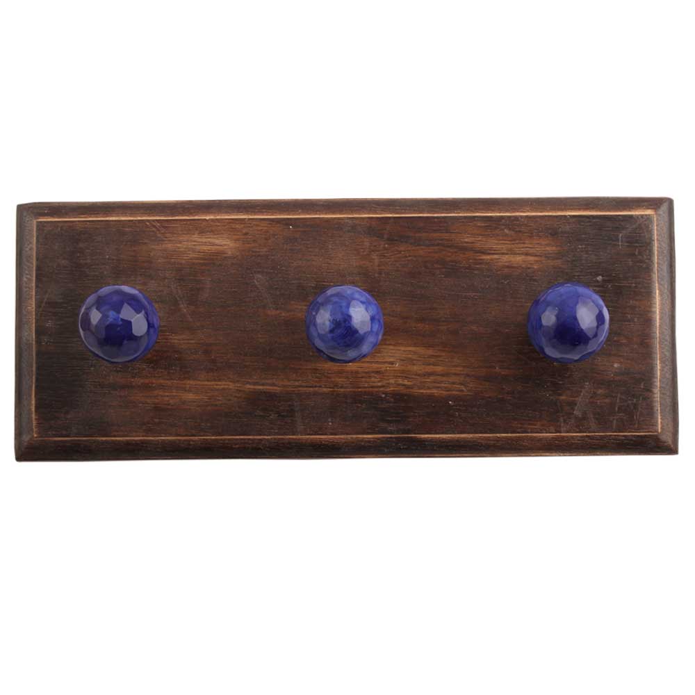 Round Navy Blue Glass Wooden Hook. A Perfect Complement to the Soft Tone of the Wood are these White Traditional Hat and Coat Hook Made of Genuine Porcelain and Brass. It can be used to Hang Jewelry, Leashes, Towels, Scarves, Light Weight Sweaters, Caps etc.