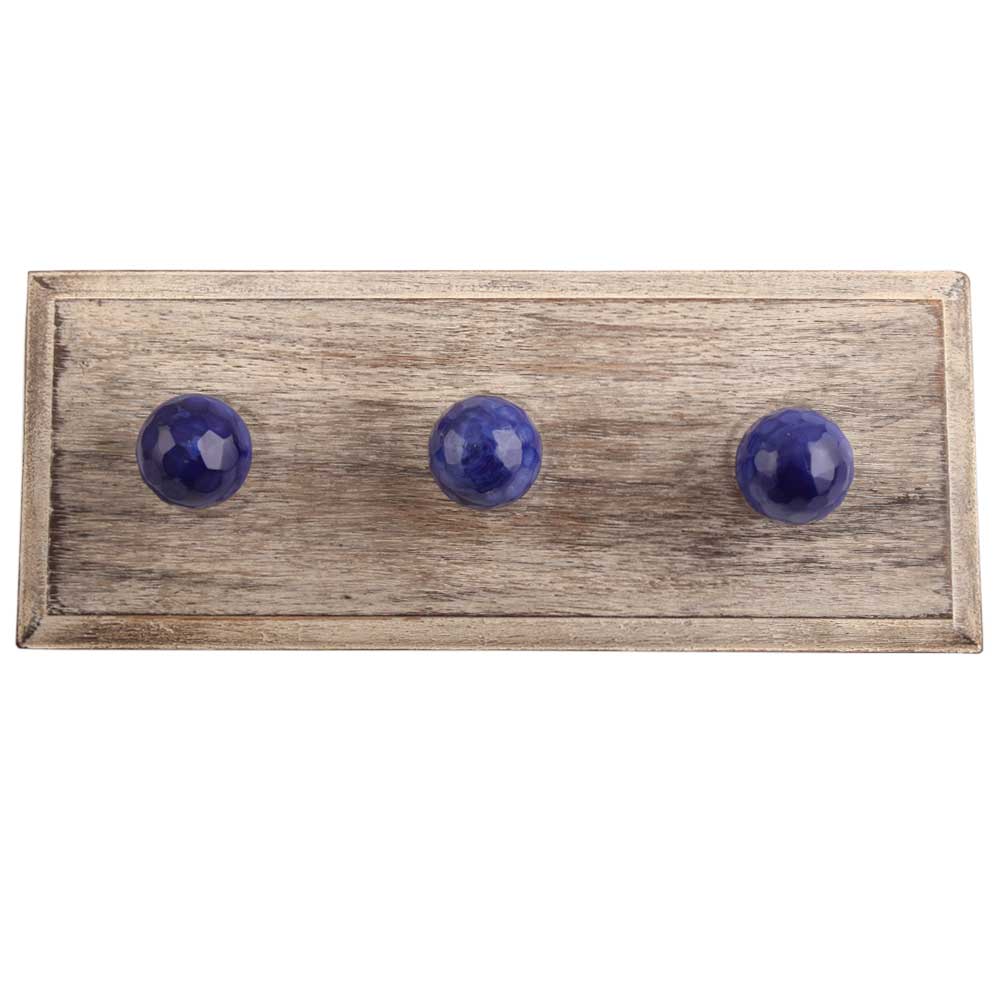 Round Navy Blue Glass Wooden Hook. A Perfect Complement to the Soft Tone of the Wood are these White Traditional Hat and Coat Hook Made of Genuine Porcelain and Brass. It can be used to Hang Jewelry, Leashes, Towels, Scarves, Light Weight Sweaters, Caps etc.