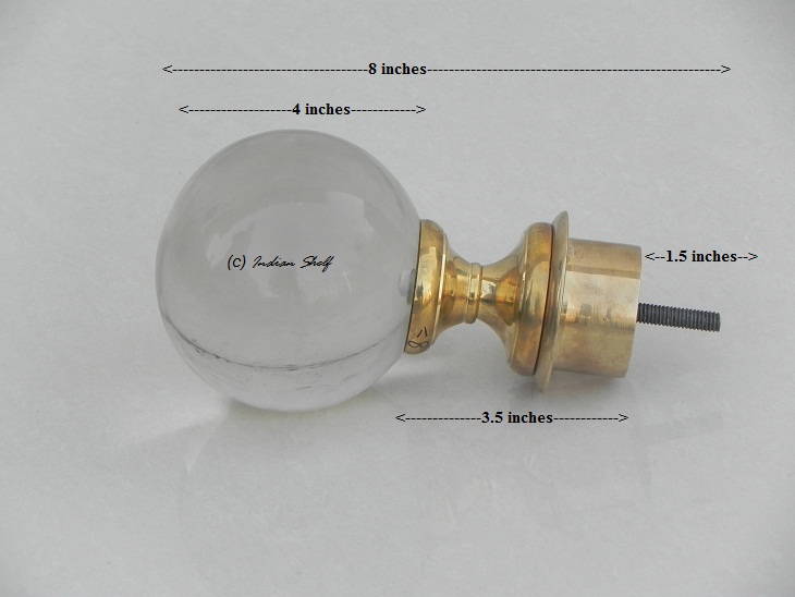 The piece stands 9" tall and the diameter of the orb is approximately 4".