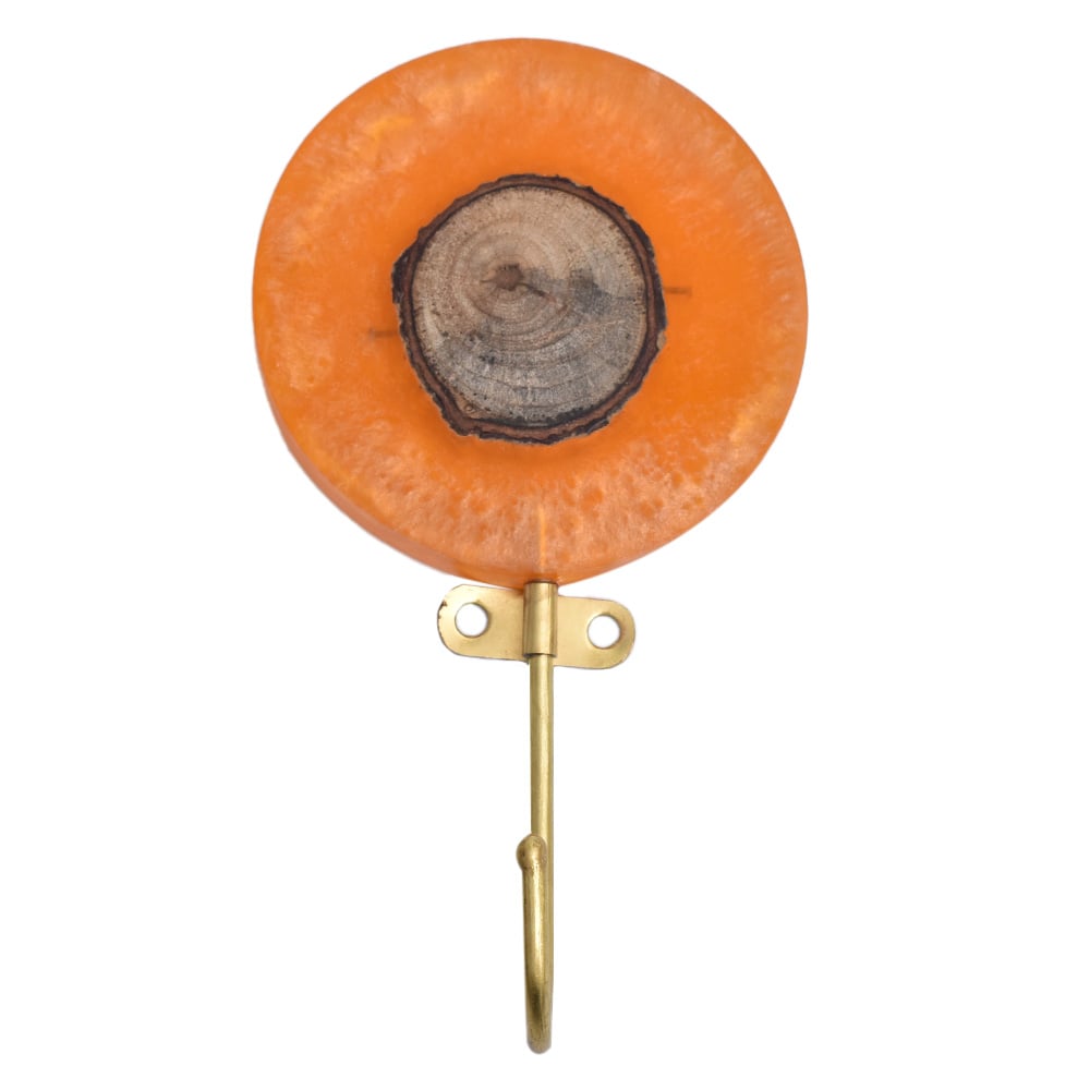 Brighten up your space with the Round Orange Resin and Wood Single Wall Hook, a handcrafted blend of natural materials and bold design. Featuring a vibrant orange resin disc set in warm, polished wood, this wall hook brings a playful yet elegant touch to any room. The circular shape and rich contrast make it as much a decorative piece as a practical accessory, ideal for modern homes that love a pop of personality with everyday function.