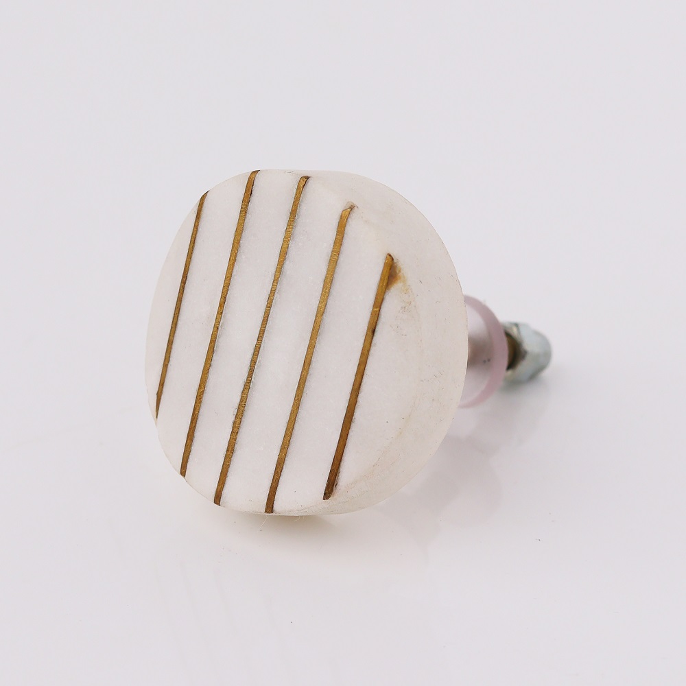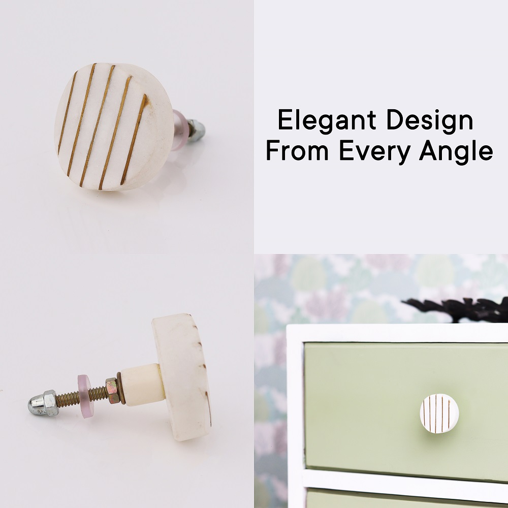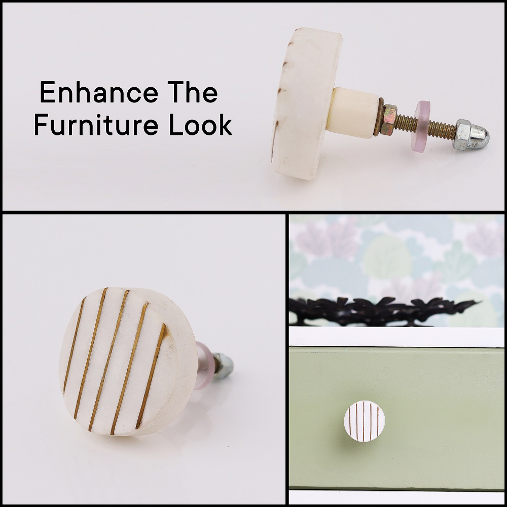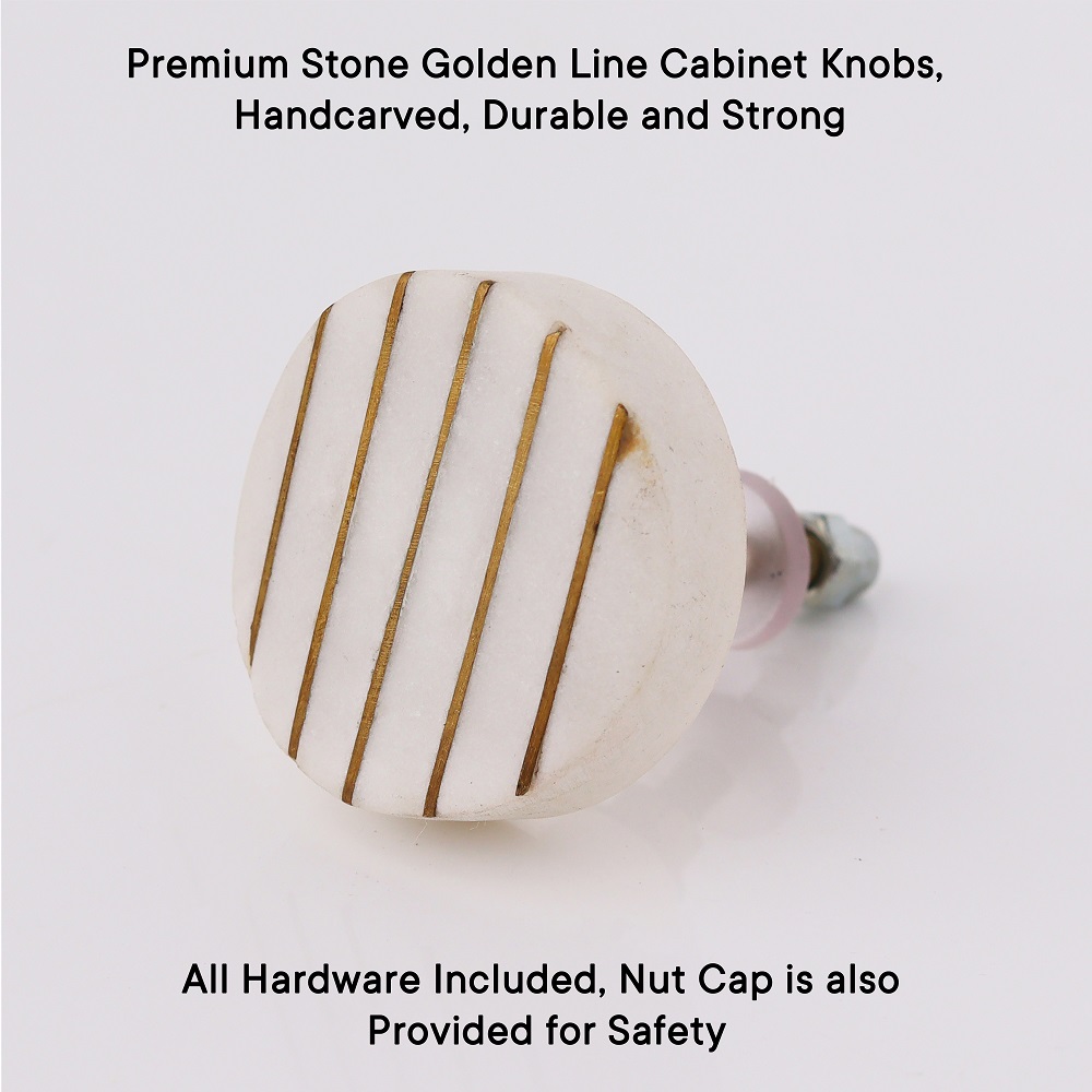 Crafted with high-quality materials, these cabinet knobs are built to last. The sturdy white stone construction provides reliable functionality while maintaining their elegance over time. The golden line detailing is securely incorporated, ensuring the design remains intact for years.