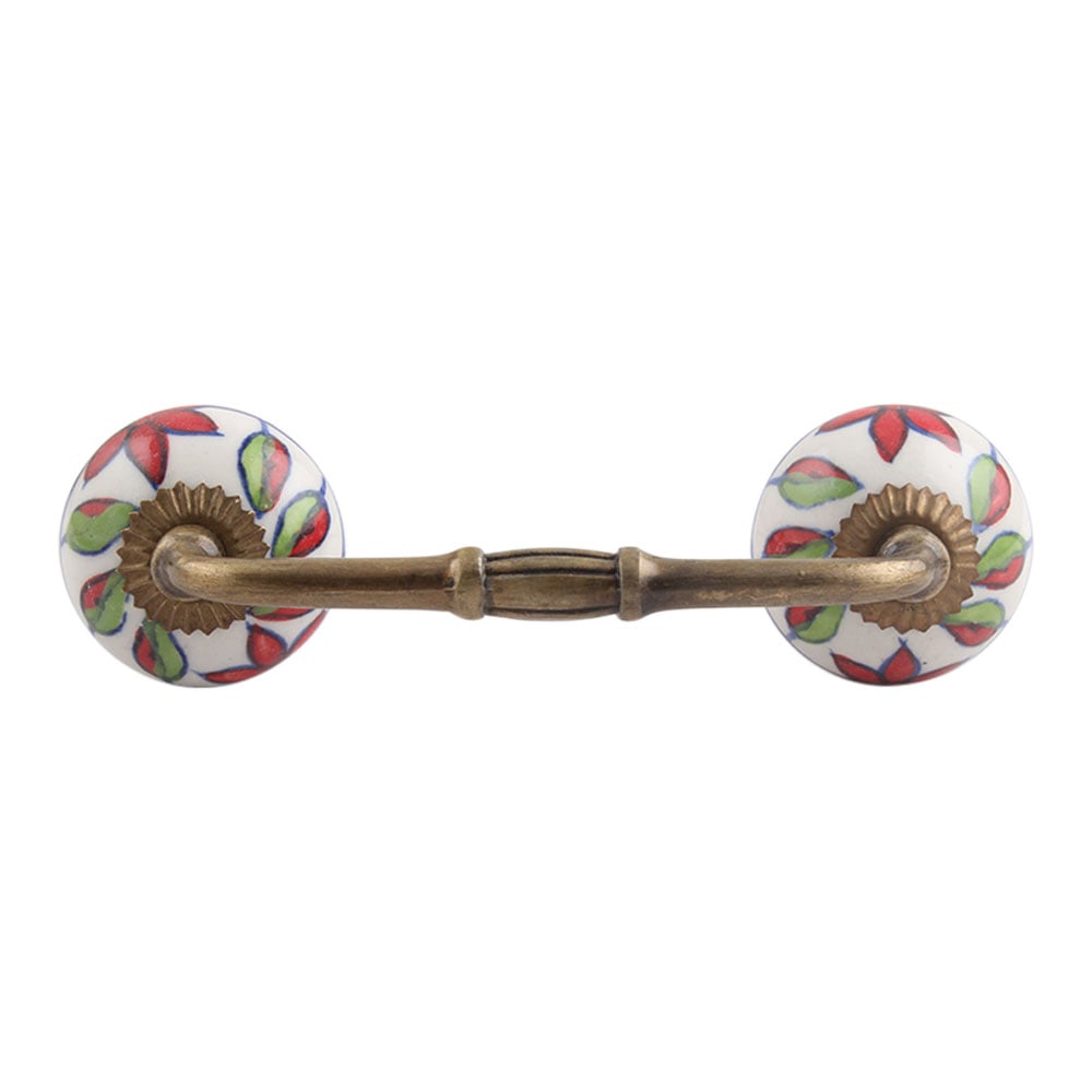 Round Plumeria Mystical Ceramic Bridge Handle. Ideal for Drawer, Dresser, Cabinet, Wardrobe, Cupboard and Almirah.