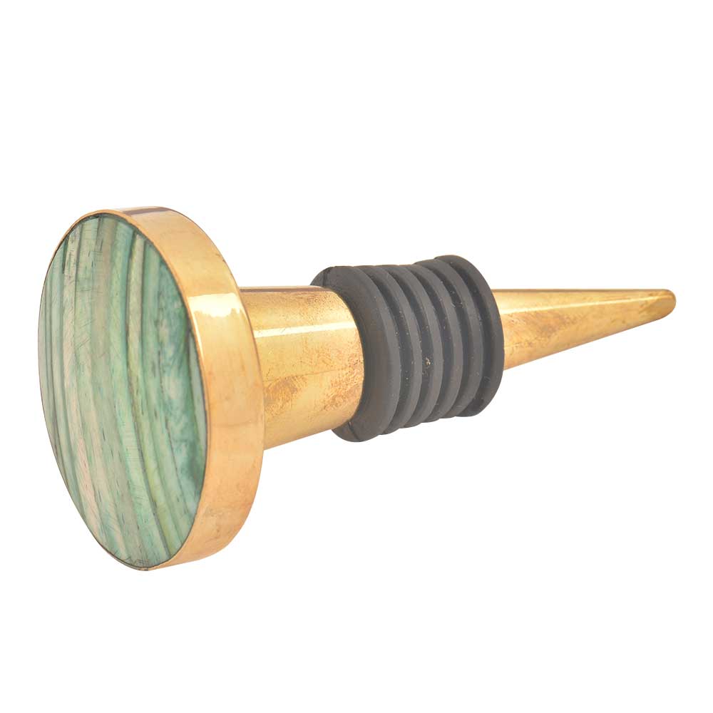 Round Sea Green Metal And Bone Wine Stopper