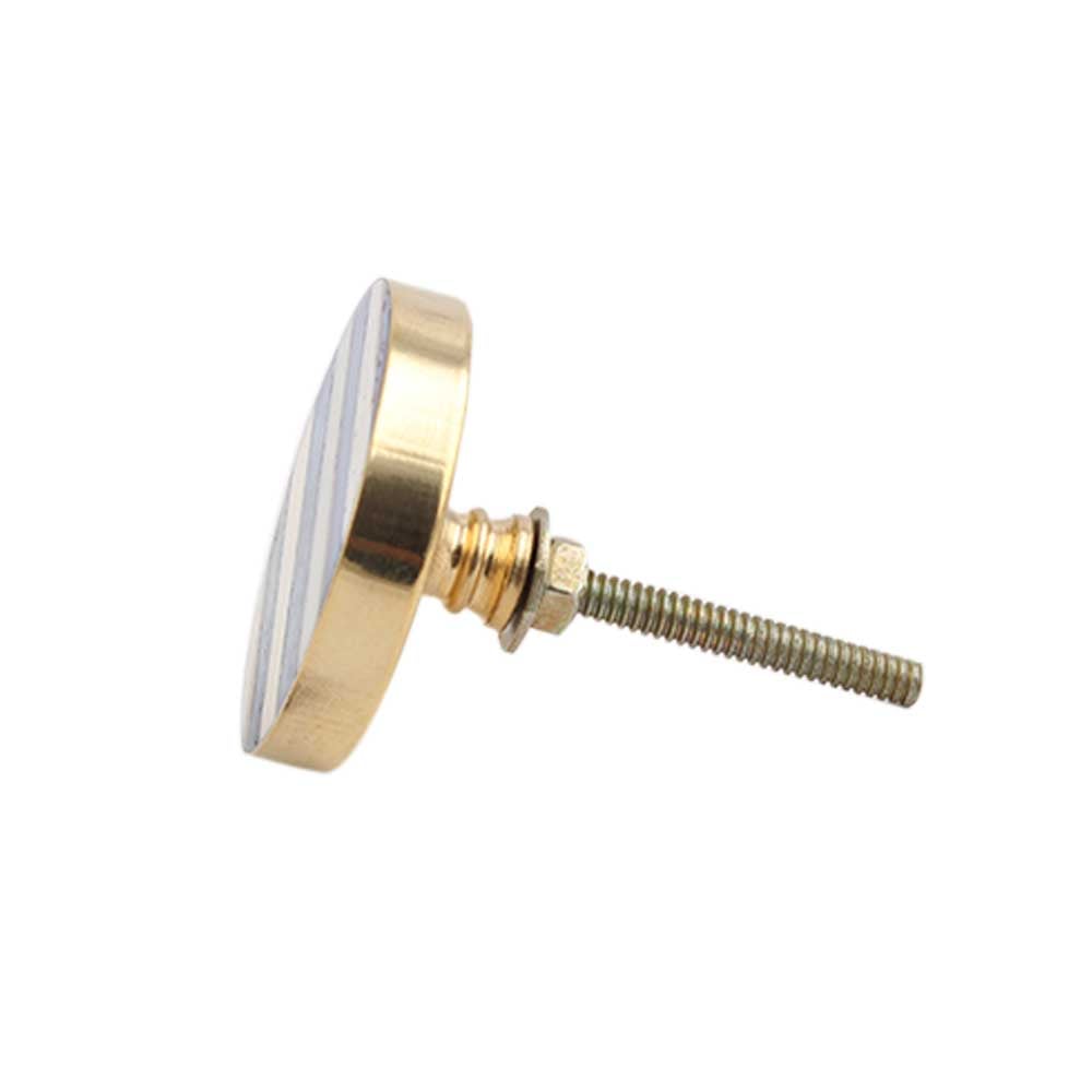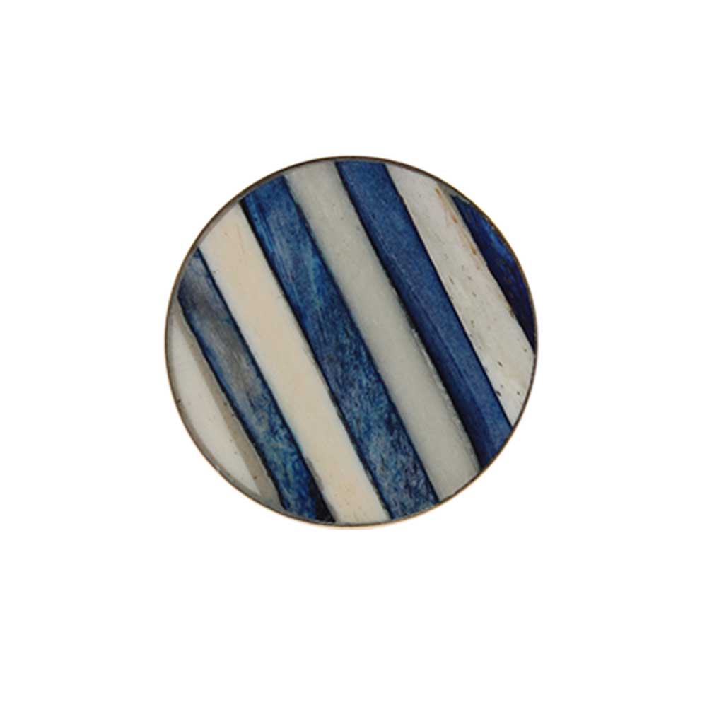 The Round Slate Blue White Metal and Bone Knob combines modern design with natural materials, providing a stylish upgrade for your furniture. Handcrafted from slate blue, white, metal, and bone, this knob adds a touch of luxury and sophistication to any door or drawer. Its round shape offers a comfortable grip, while the attractive design enhances your home decor.