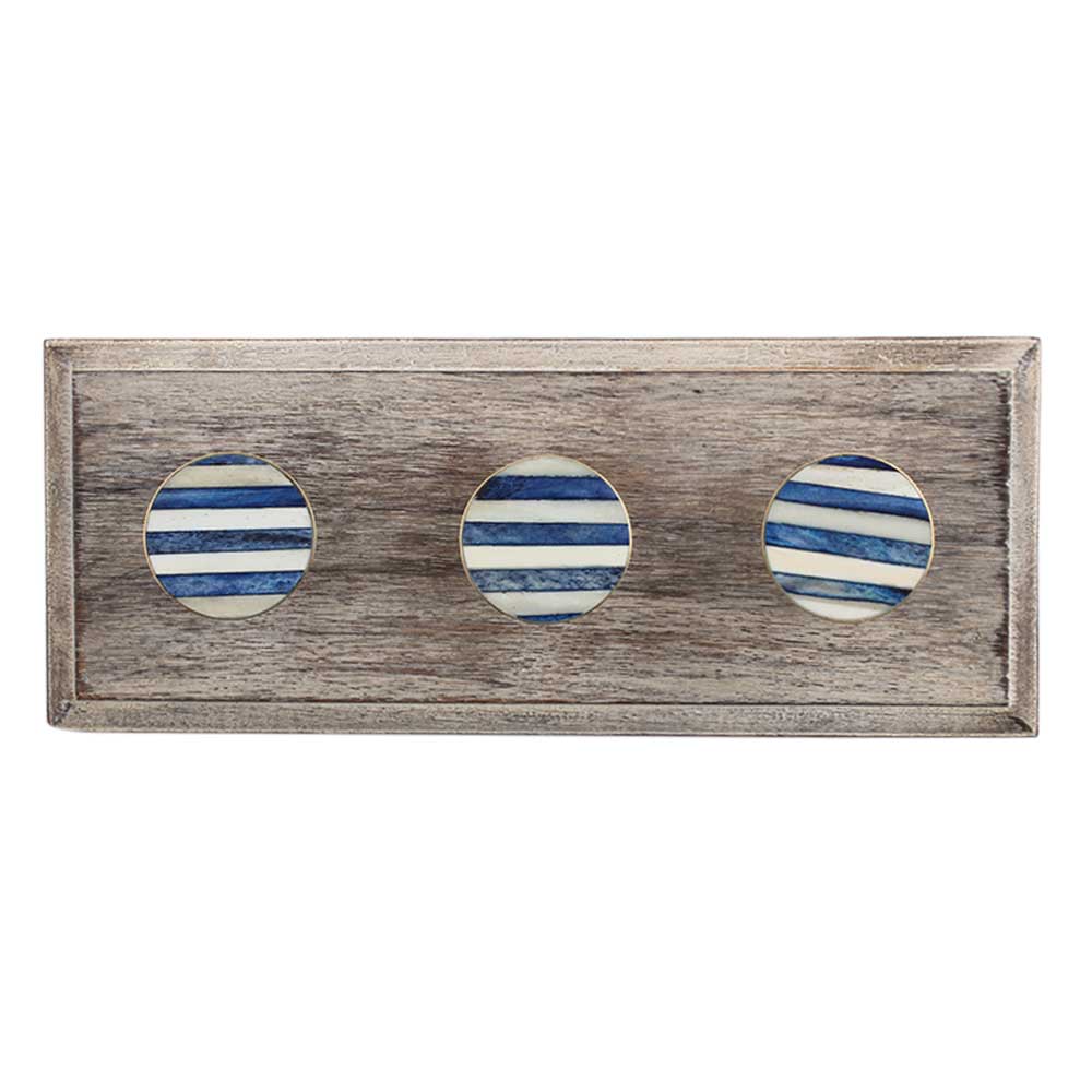 Round Slate Blue White Metal and Bone Wooden Hooks