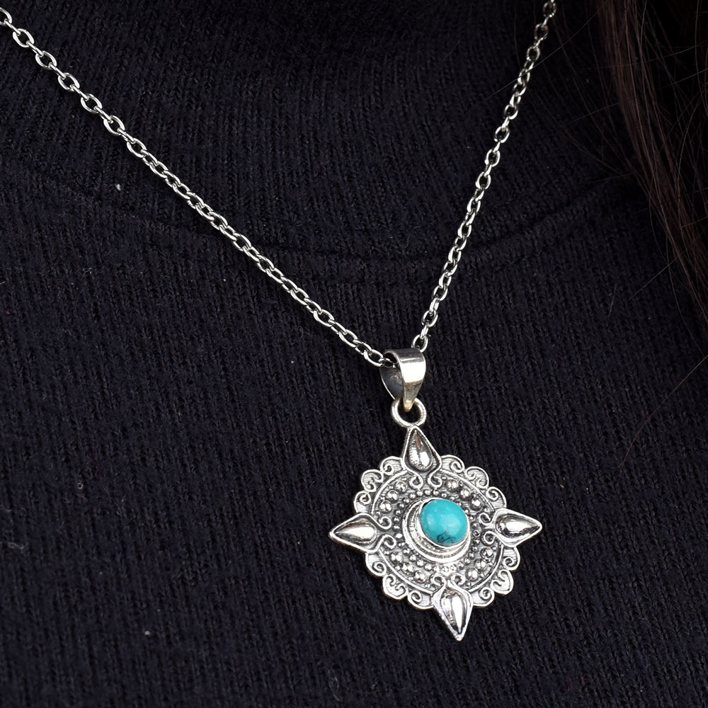 • Round Starry Blue Stone 92.5 Sterling Silver Pendant Jewelry