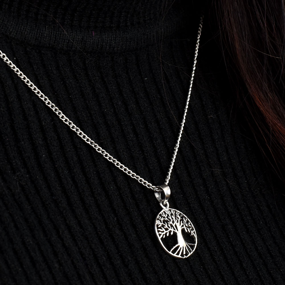 Tree Of Life 92.5 Sterling Silver Pendant Necklace in a round frame can be worn at any occasion with traditional as well as modern attire. Gift it to your family and friends on Diwali, Christmas, birthday and anniversary.