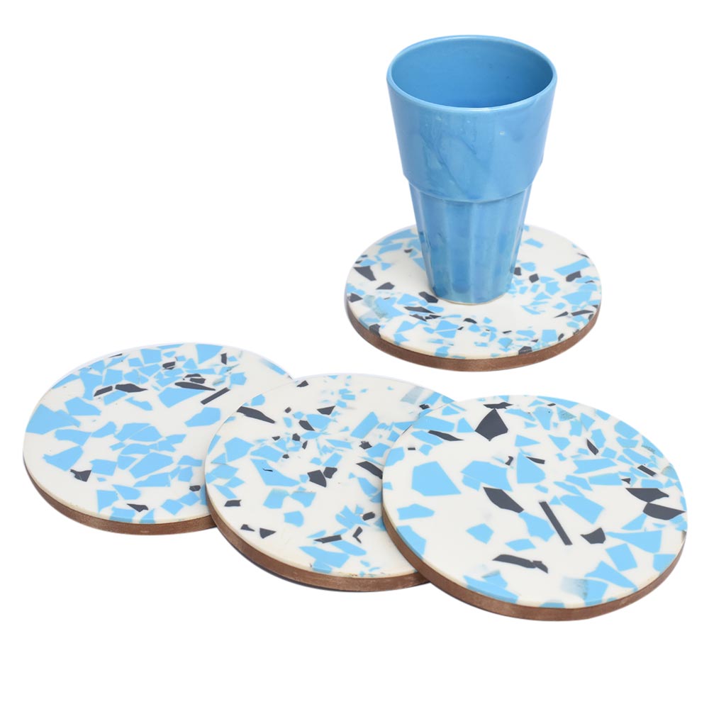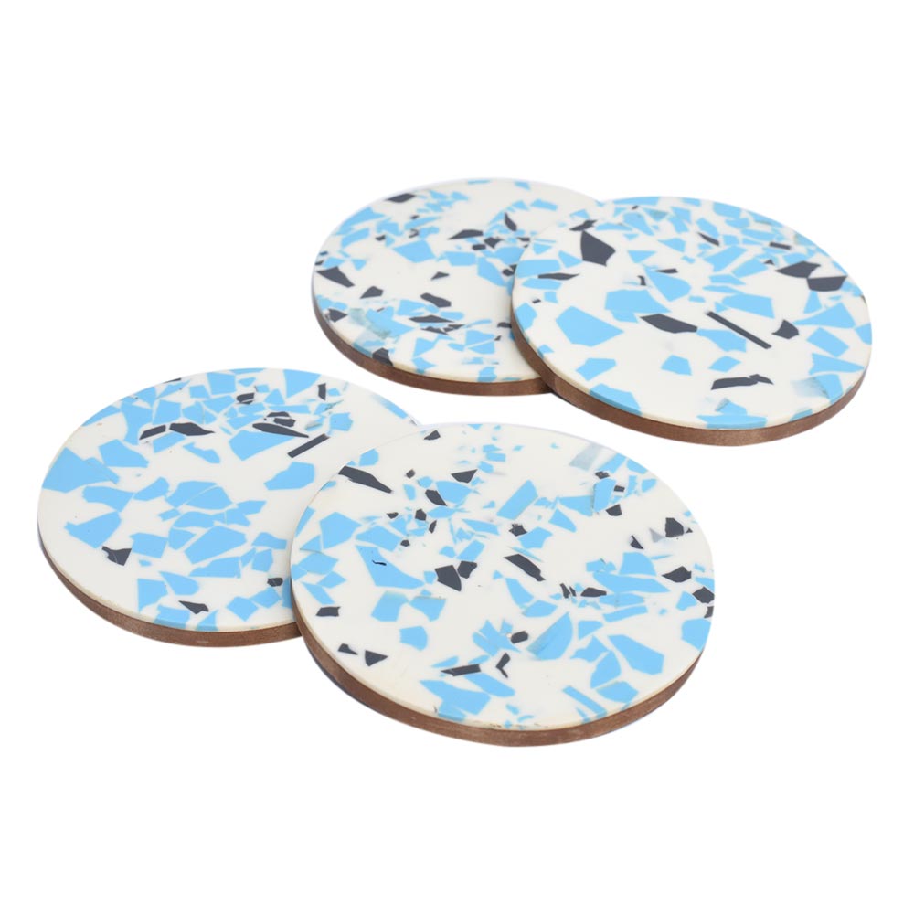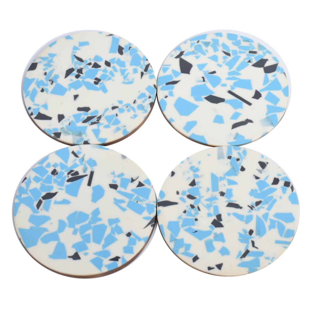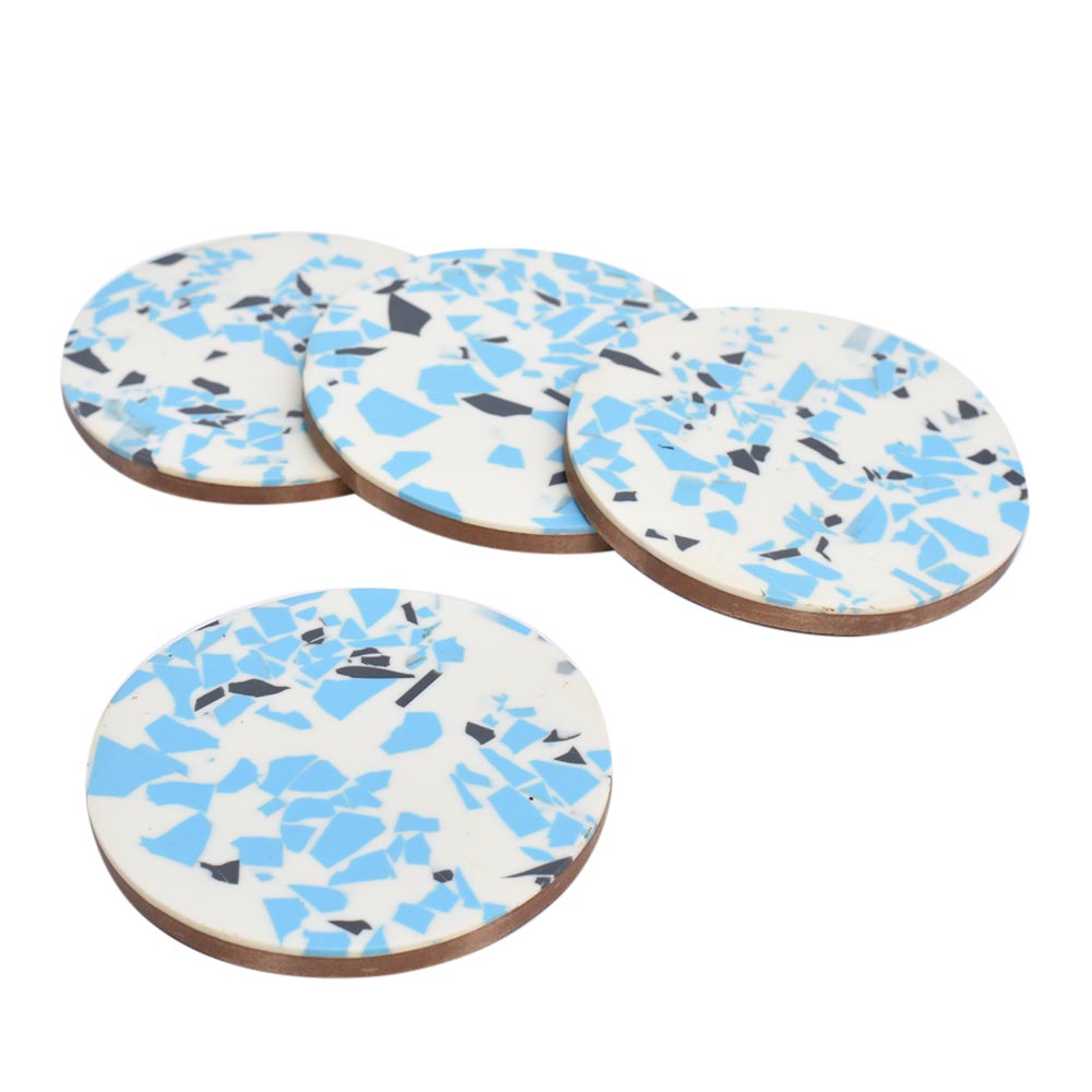 Round Wood And Resin White Terrazzo Coasters Set of 4