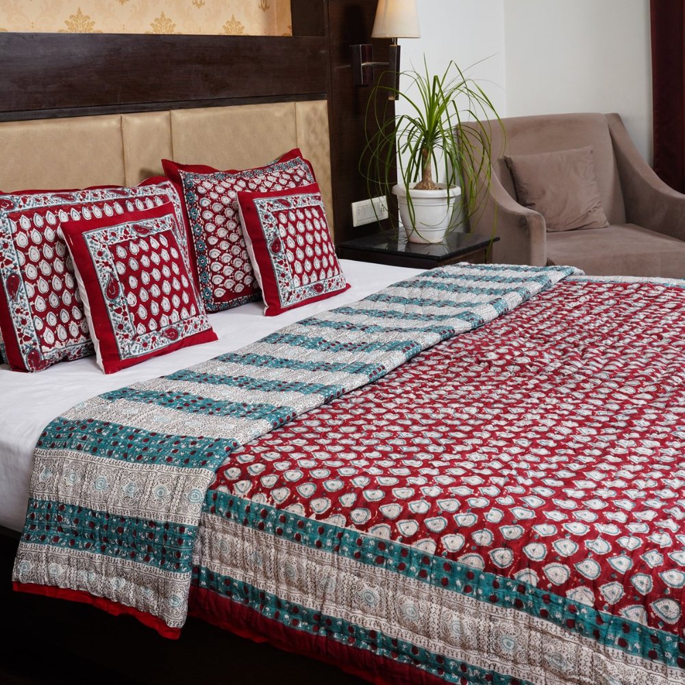 Each quilt is hand-block printed by skilled artisans, making every piece unique and eco-friendly.