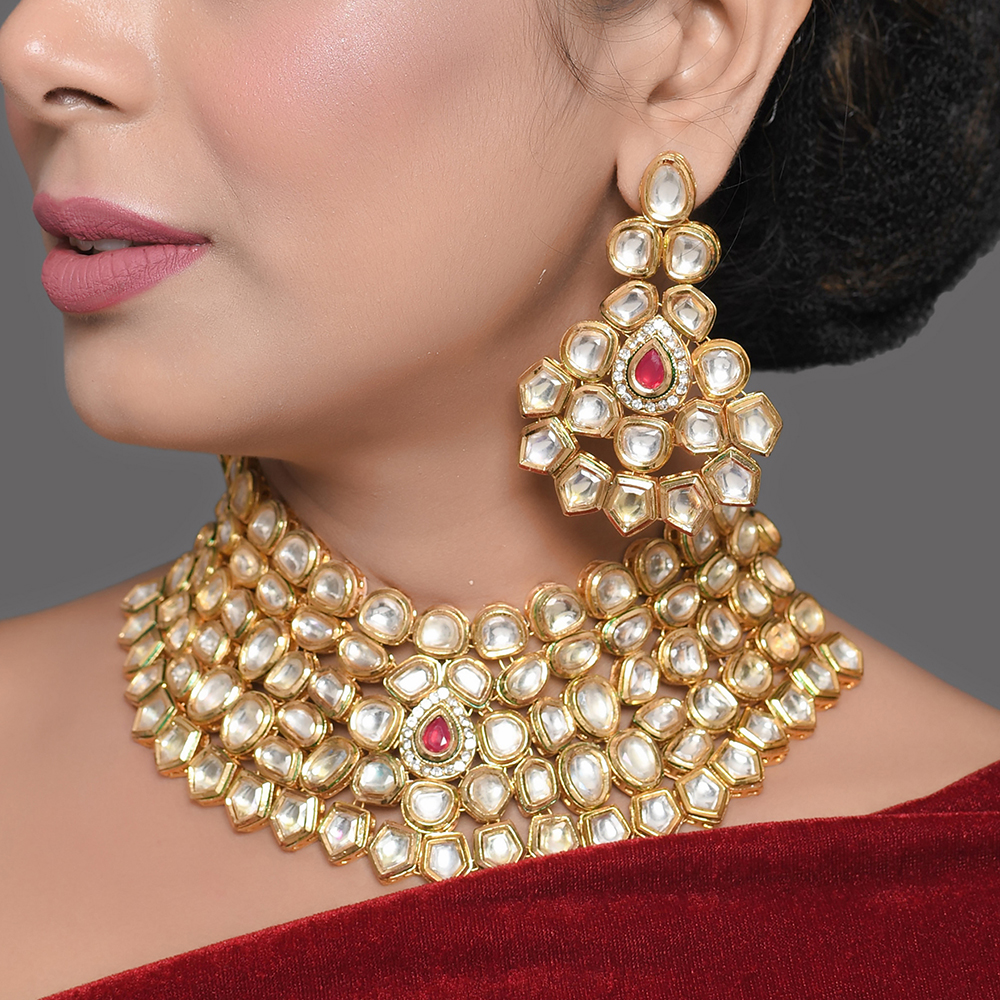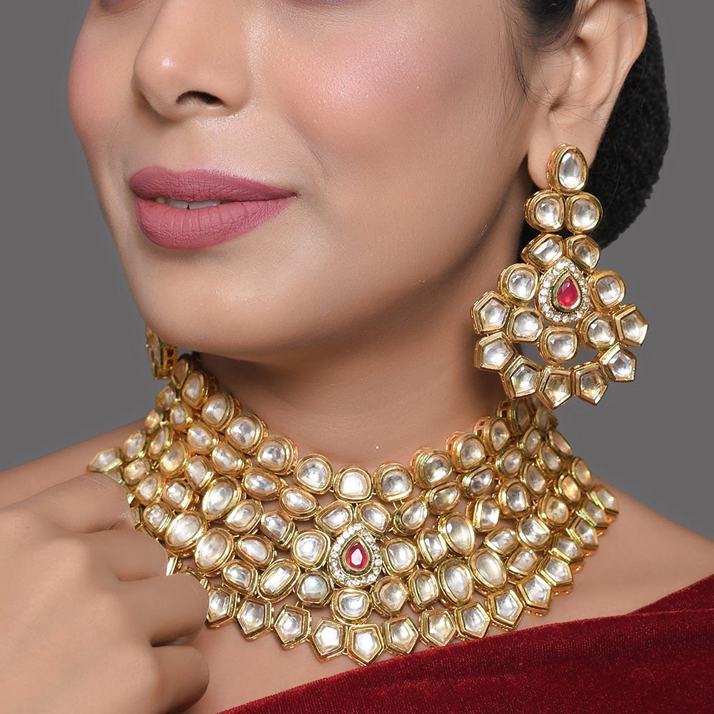 Absolutely. The bold choker width and coordinated pieces complement lehengas and silk sarees beautifully.