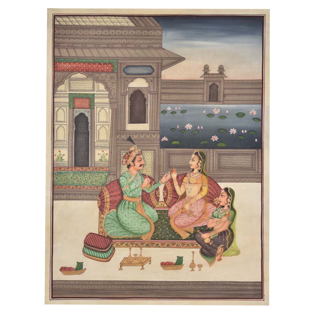 Royal romance Moghul painting 48 X 36