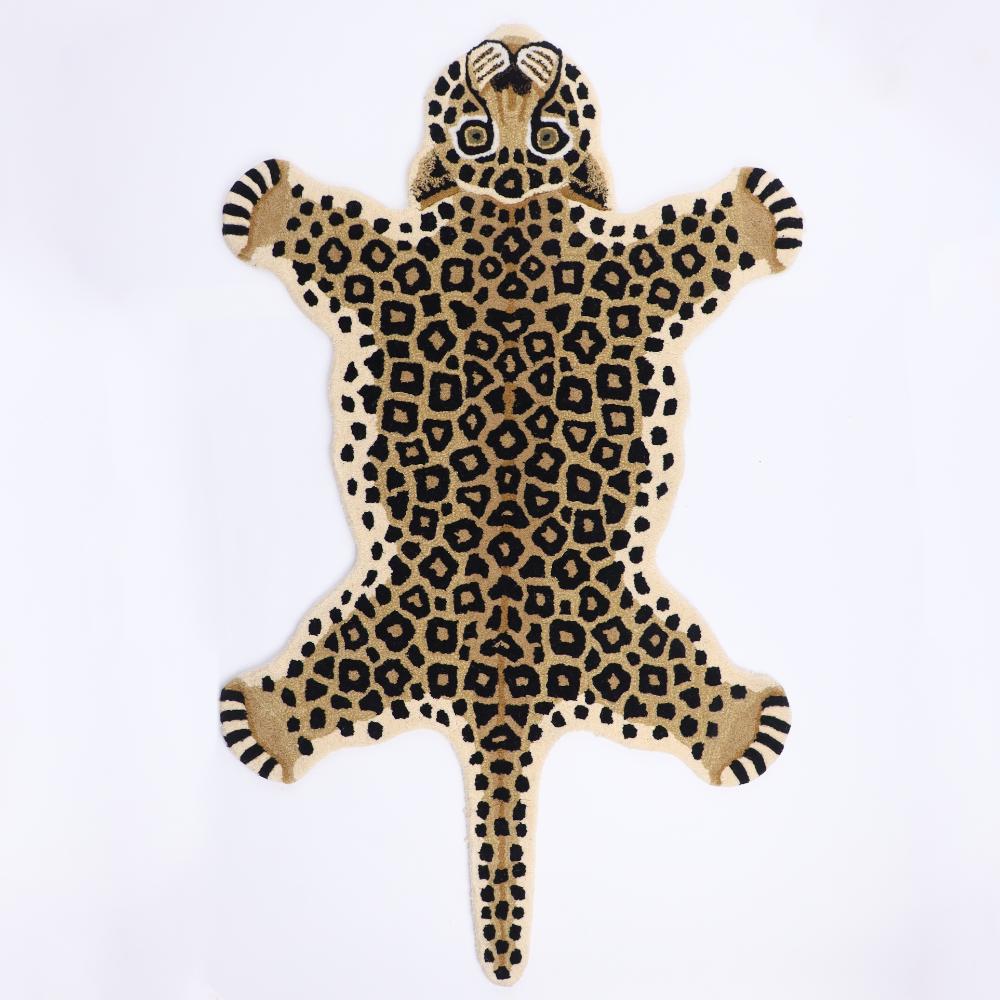 A fun rug in the shape of an animal is called Rug Leopard . This warm, plush, and hand-tufted rug is thick. The ideal carpet for a child's room. This hand-tufted rug in the contemporary style was skillfully created with premium wool by master rug craftsmen. This rug has a cotton backing and was woven in India using only wool. Place this sophisticated carpet in your living room and bedroom, and prepare to receive many praises from your visitors.